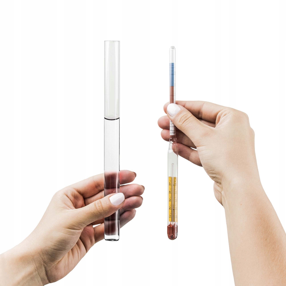 Спиртометр з термометром у скляній пробірці - ареометр, що дозволяє вимірювати вміст спирту в безбарвних горілках, що не містять цукру. Це лічильник, який, безумовно, стане в нагоді у вашому домі, а також у барах, коли розбавляєте алкоголь у напої! Лічильник складається з пробірки і поплавця, з великою шкалою від 0 до 95% об'єму спирту. Термометр також постійно розміщений у поплавці, що дозволяє контролювати температуру рідини під час вимірювання. За допомогою цього приладу можна легко, швидко і, головне, точно виміряти відсотки в чистих спиртах (горілці, спирті, самогоні), тобто тих, які не містять домішок цукру і барвників, які спотворюють результат. Тому спиртомір не підходить для вимірювання відсотків у винах і лікерах! Вимірювання надзвичайно просте, а результат зчитується безпосередньо з шкали без додаткових перерахунків. Пласке дно трубки полегшує вимірювання завдяки стабілізації поплавця. Під час вимірювання посудину можна поставити на лічильник, але її потрібно весь час тримати. для вимірювання відсотків у чистих спиртах (горілці, спирті, самогоні), тобто без домішок цукрів і танінів, які спотворюють результат.