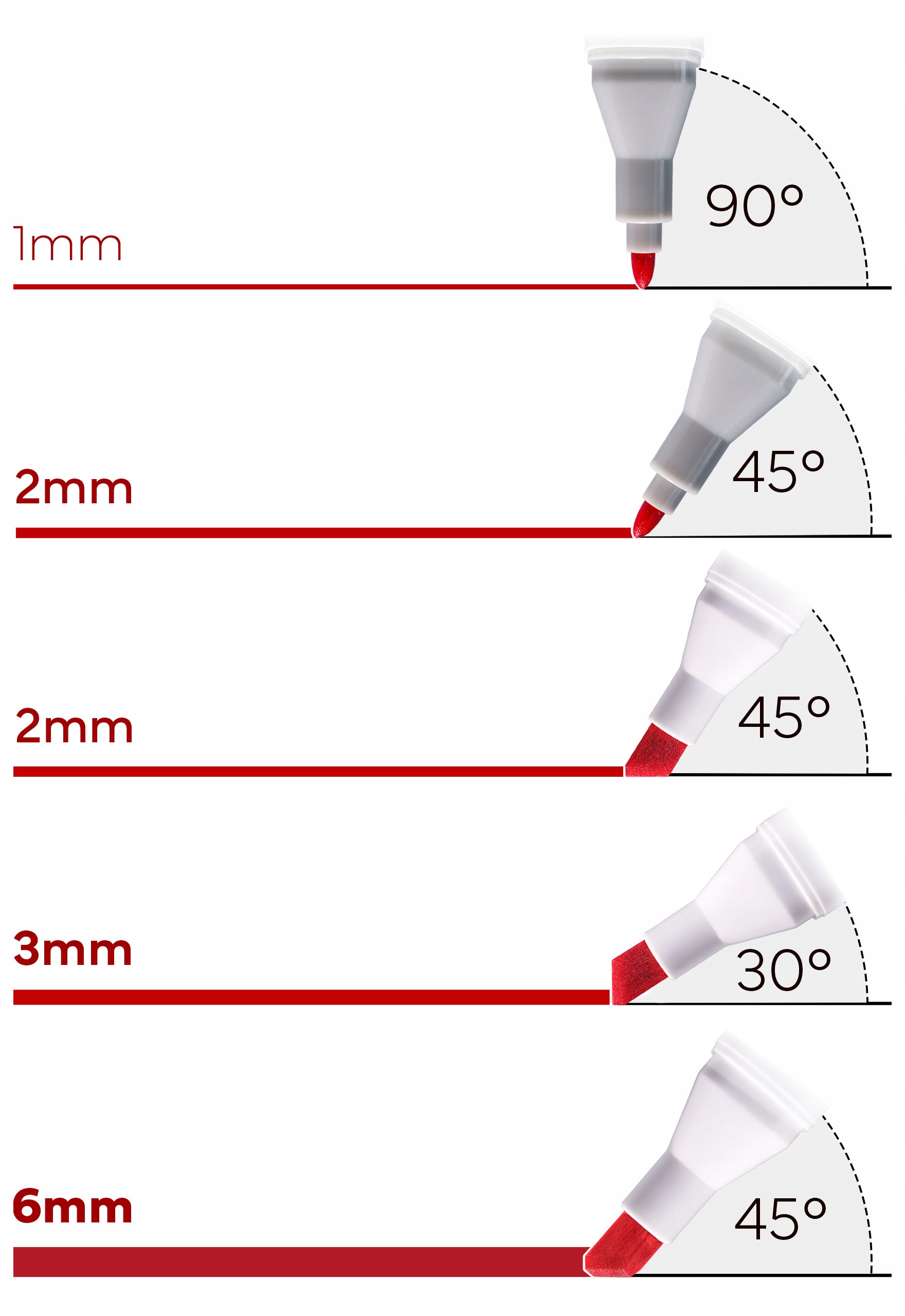 Завдяки унікальній формі кінчиків, маркери дозволяють досягти 4 точних ширини лінії!