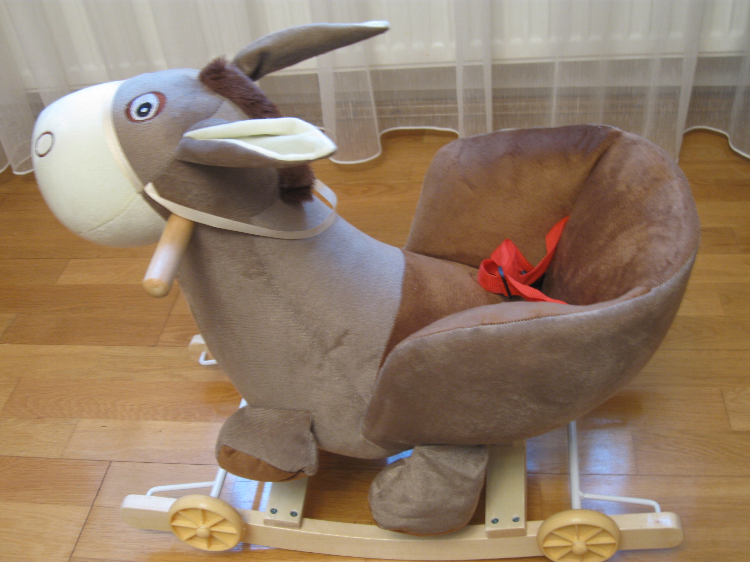 Іграшка виготовлена з м'якого і приємного до сенсорної плюшевої . Рокер оснащений колесами, прихованими на ковзанах, завдяки якому його можна швидко перетворити на комфортну їзду. У голові фаршированих сильні ручки встановлені, щоб полегшити підтримку рівноваги під час гри. Звукова система живиться від акумулятора, яку слід розмістити в адаптері, розташованому в животі. Гімнастика. Навантаження: 50 кг ремінь безпеки для наймолодшого CM