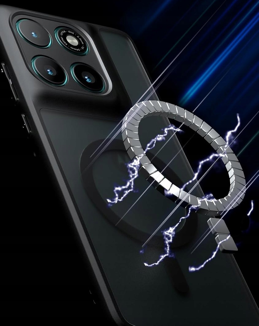 побудоване -in магнітне кільце magsafe забезпечує швидке та певне вкладення аксесуарів, сумісних з цією технологією, такими як зарядні пристрої (працює лише з телефонами, що підтримують індукційну зарядку), гаманці або ручки автомобіля . Магніти, вбудовані в корпус, належним чином розташовані, щоб забезпечити ідеальне пристосування та стабільність встановлених додавання -они. Ring magsafe не впливає на ваше щоденне використання, а самі аксесуари можна легко та швидко прикріпити та демонтувати.