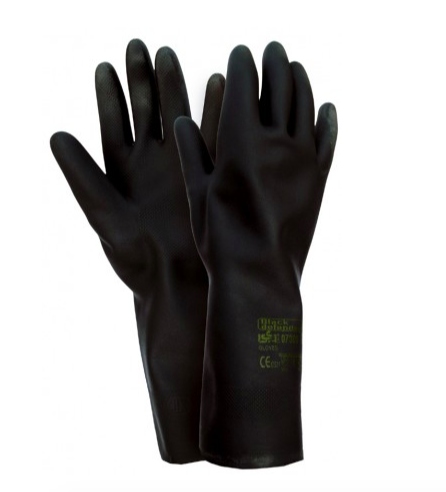 Неопренові та гумові рукавички з легким пластиковим внутрішнім шаром. Ребриста структура на долоні та пальцях для кращого захоплення, відмінної механічної стійкості та хімічного захисту при використанні помірно агресивних хімікатів