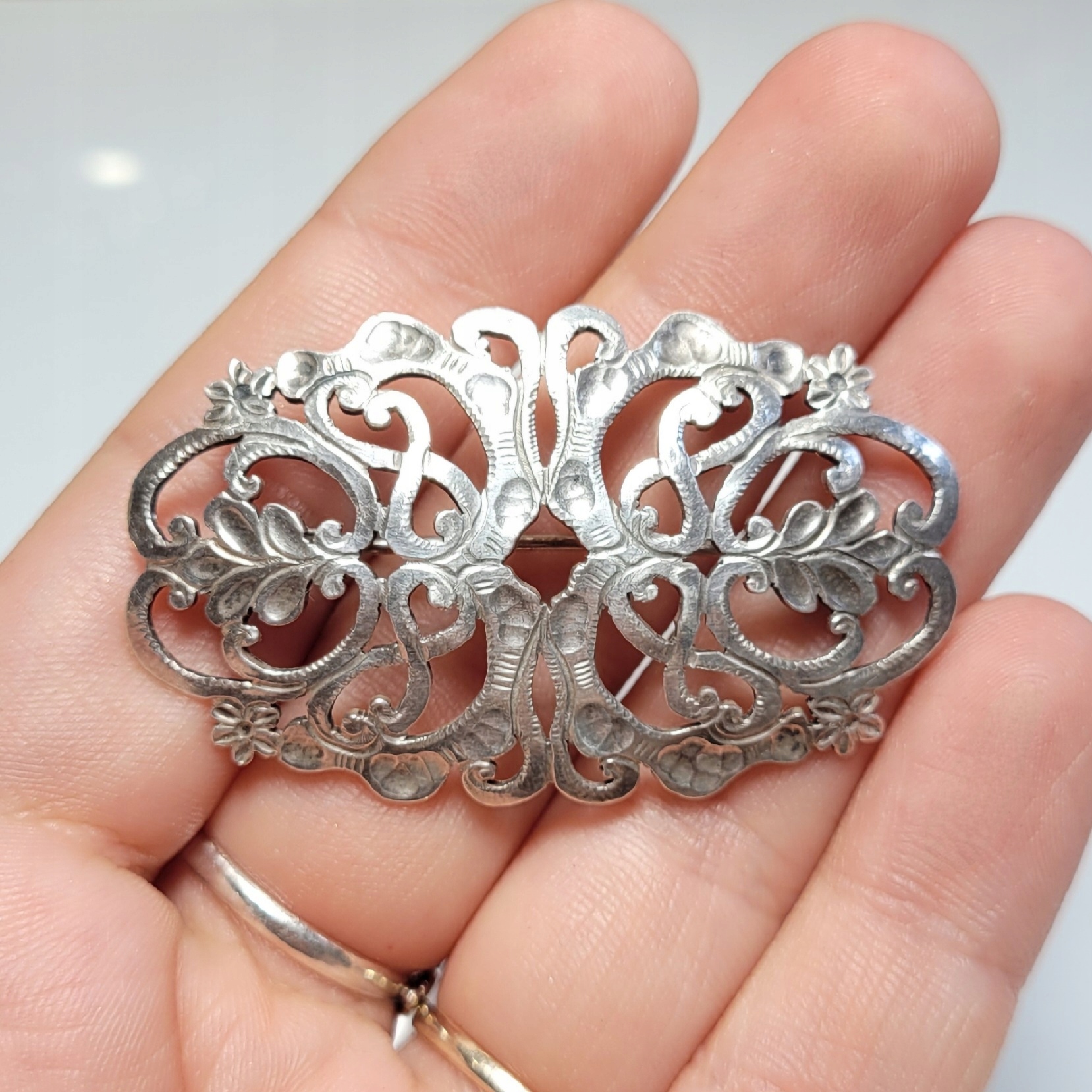 Срібло 0.900 Срібна брошка, овальна, ажурна, декорована вручну