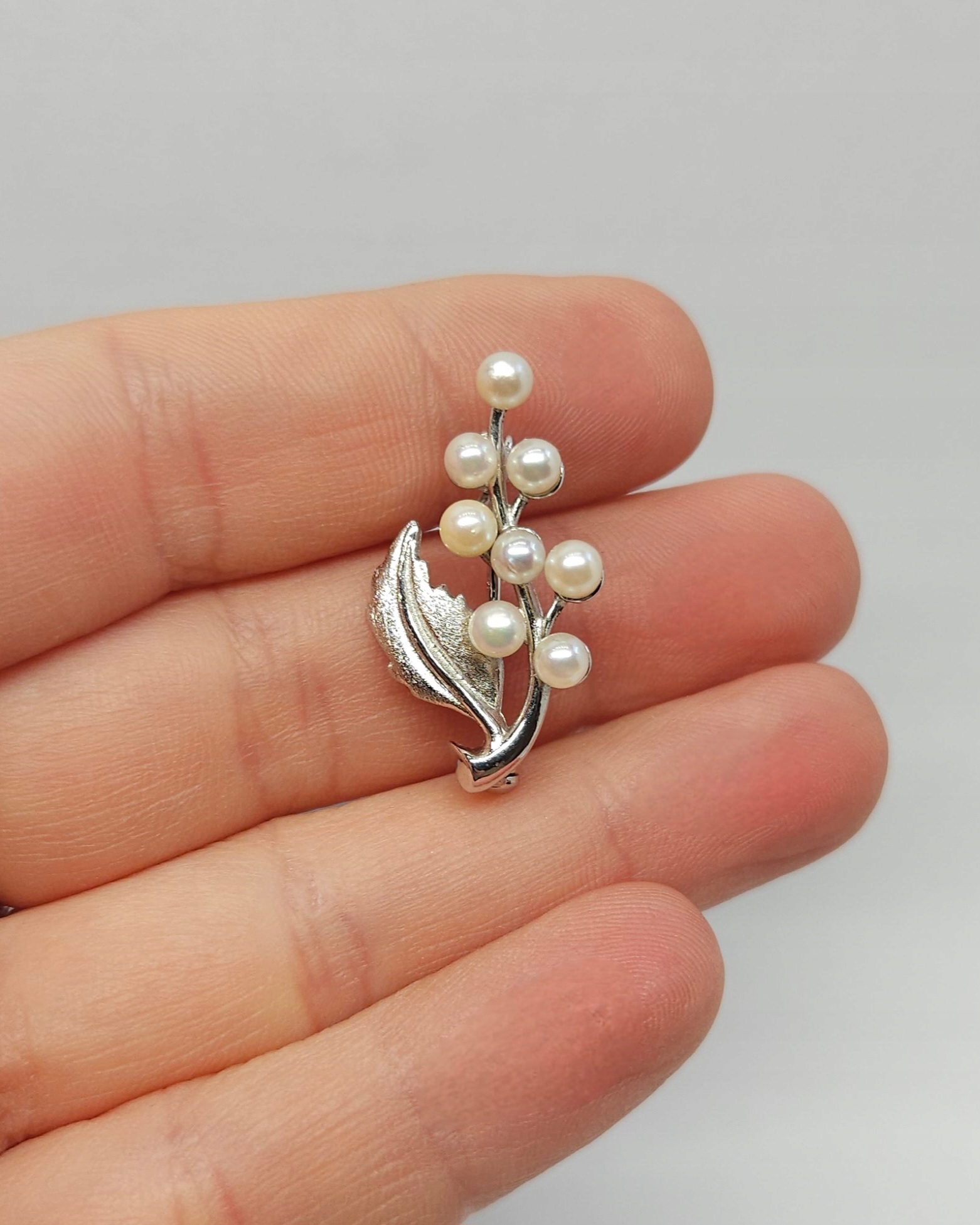 Срібна брошка з розведеними перлами, сріблястий пі. 0,835 гілка