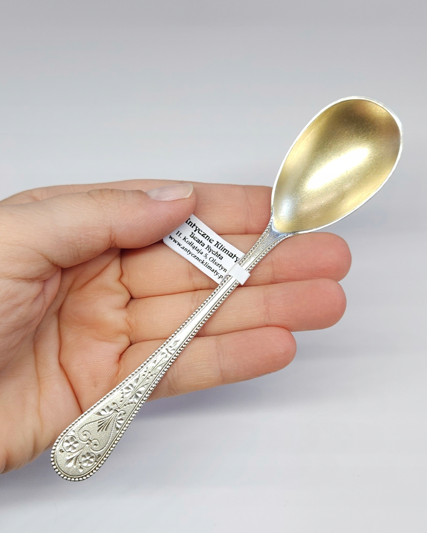 Срібна чайна ложка широко, гравірована рука, сріблястий пі. 0,800 золота -