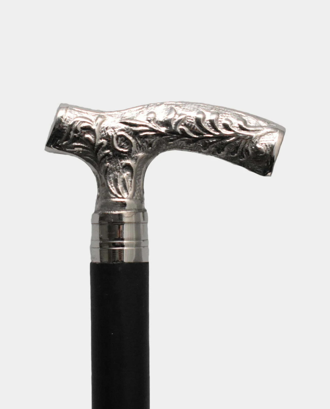ходьба курча з ручкою народного стилю. Ця прекрасна та оригінальна пташеня виготовлена з високоякісних матеріалів. Ядро пташеня виготовлена з сильної букової деревини, лакована в елегантному чорному кольорі, закінченій гумовою ногою. Ручка виготовлена з никельного металу і рясно прикрашена рослинним орнаментом.