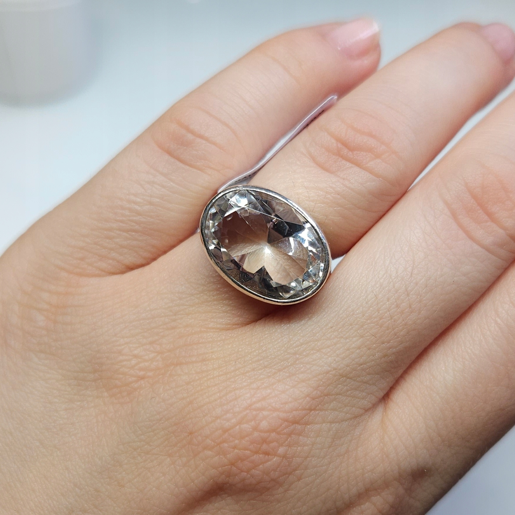 Срібне кільце з прозорим природним каменем, срібло 0,925 14