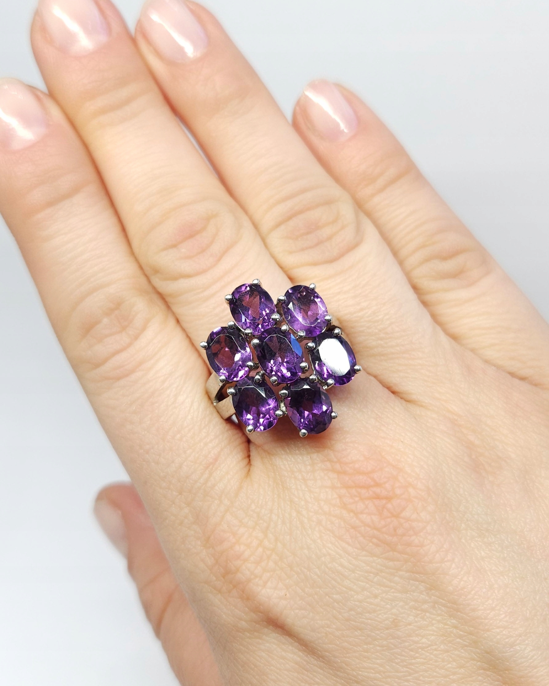 Срібне велике кільце з аметістами, срібний піар. 0,925 Розмір 19