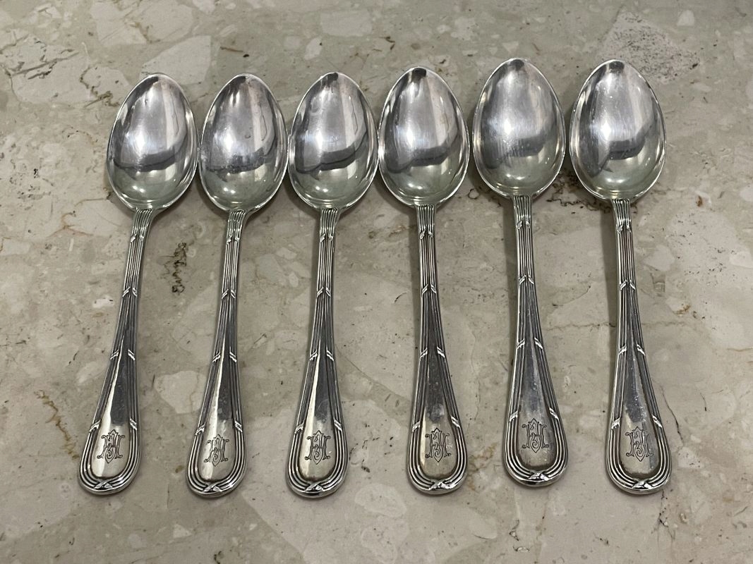 ЧУДОВИЙ НАБІР СРІБНИХ ЛОЖОК З МОНОГРАМОЮ РУЧНОЇ РОБОТИ "HJ" АБО "JH"