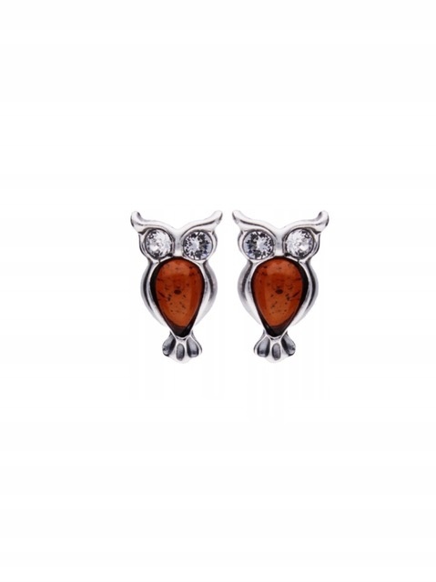 СРІБНІ СЕРЕЖКИ-ГВЕЗДИКИ СОВА З БУРШТИНОМ