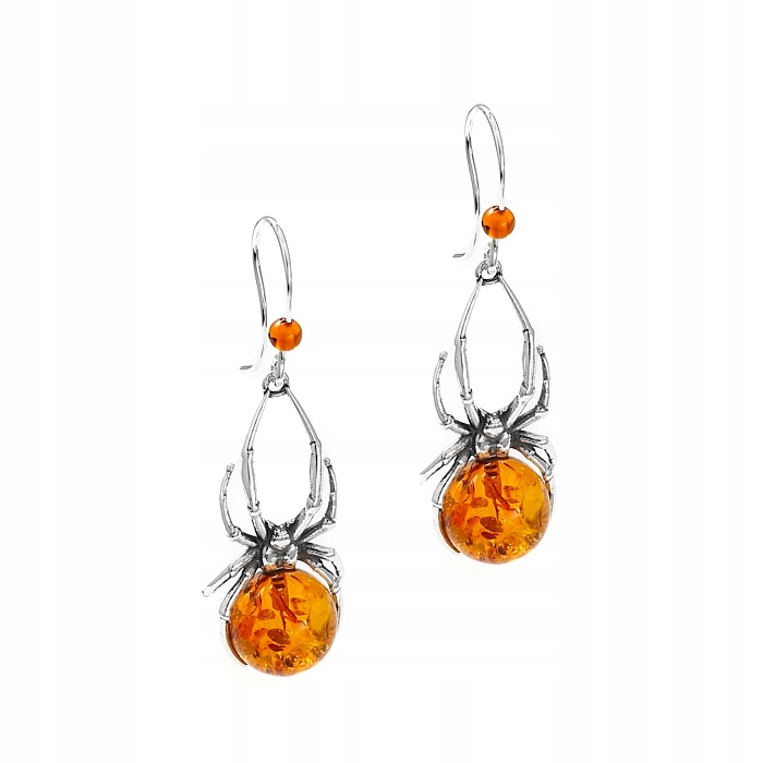 СРІБНІ ВИСЯЧІ СЕРЕЖКИ-ПАВУКИ З БУРШТИНОМ