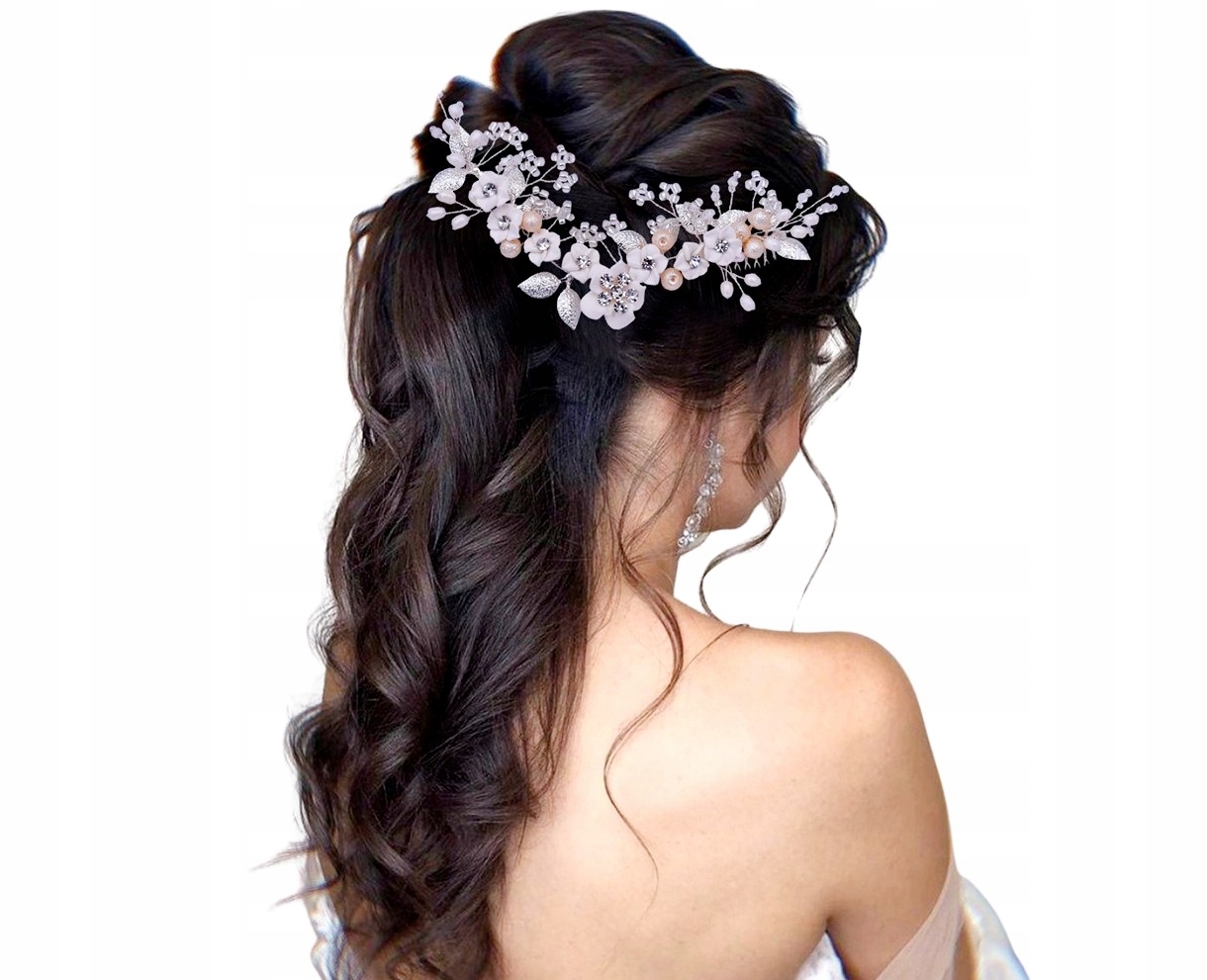 ✅ Гребінець виготовлений з високоякісних срібних дротів, прикрашений прозорими кристалами, білими перлами та красиво, добротно зробленими квітами, схожими на порцеляну.