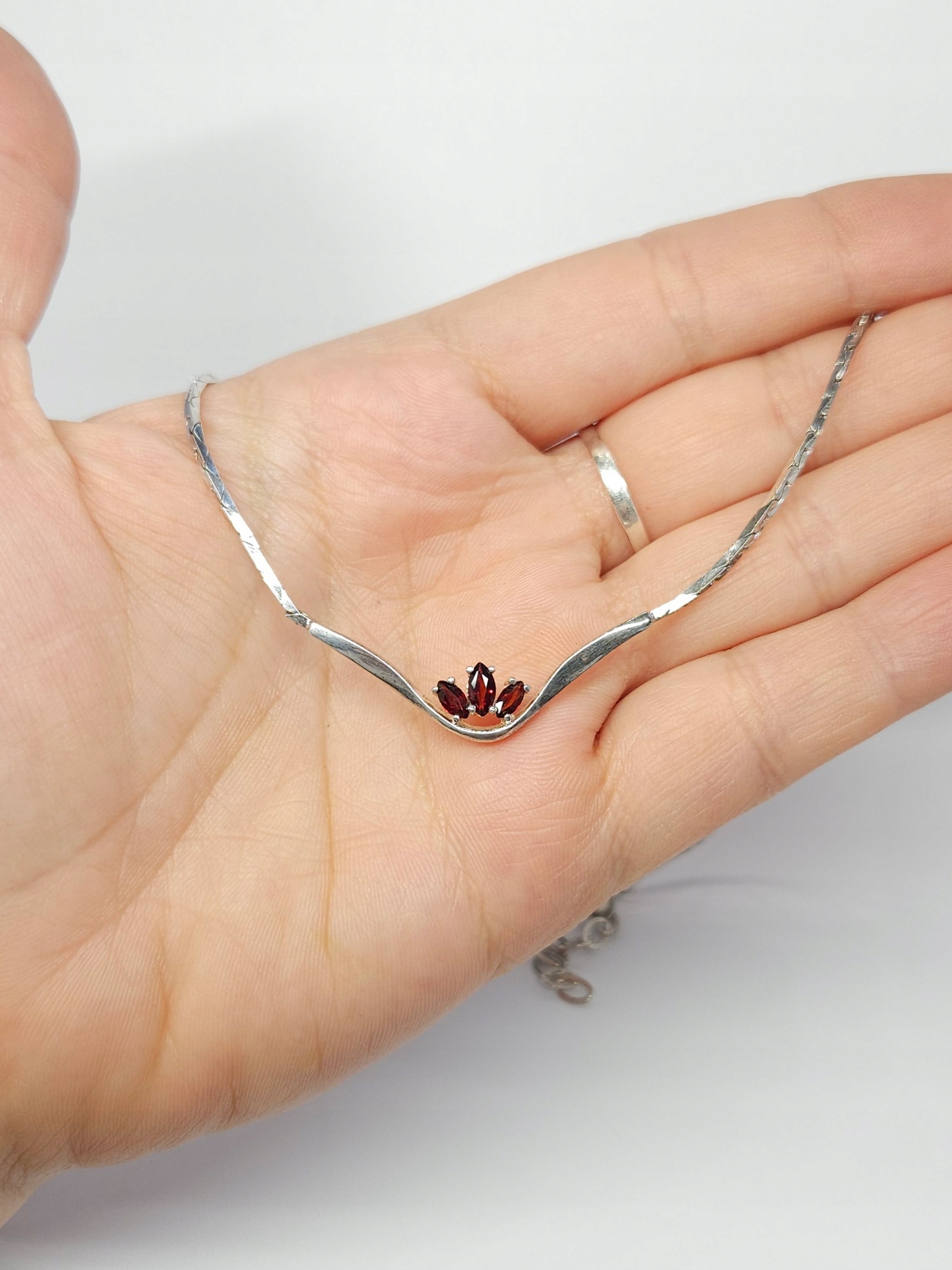 делікатне намисто, виготовлене з родійного срібла, з декоративним елементом, підірваним трьома гранатами