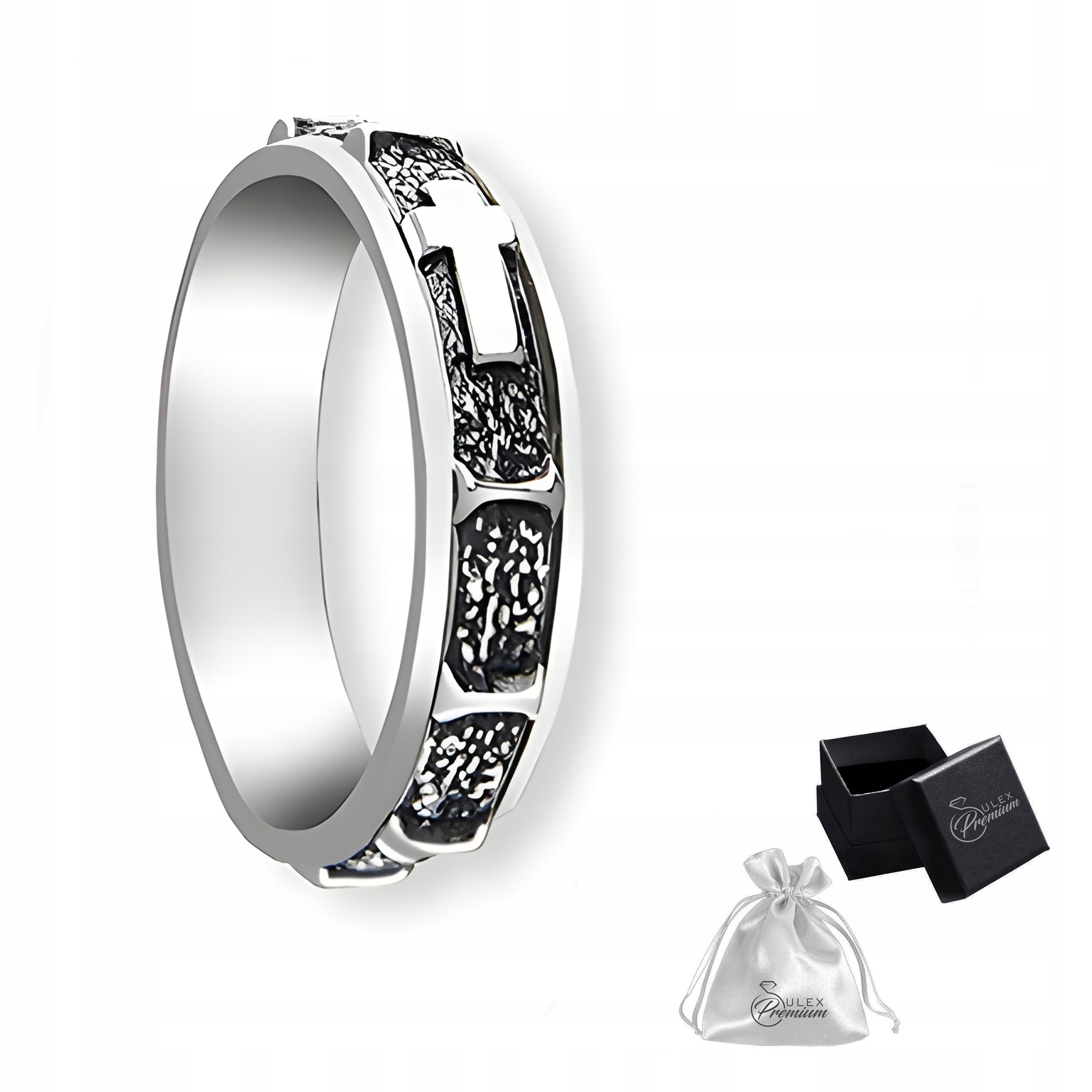 Кільце срібного розарію. 925 обертання антистрестового кільця r. Темні акценти в порожнинах підкреслюють детальні прикраси, надаючи кільце унікальний і елегантний вигляд. Функція антидестри дозволяє вільно обертати зовнішню частину, що допомагає зменшити напругу та стрес .