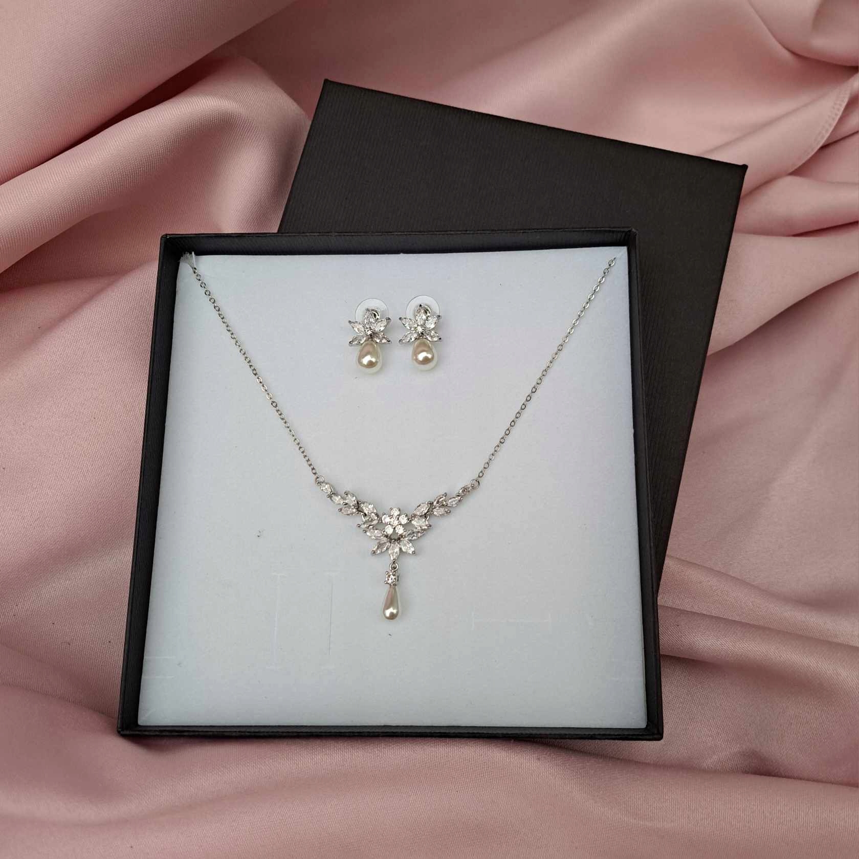 Ручні циркони додають блиску ювелірним виробам і ще інтенсивніше відбивають світло. Гламурний набір елегантний і ідеальний як весільна прикраса, а також як прикраса для інших особливих випадків.