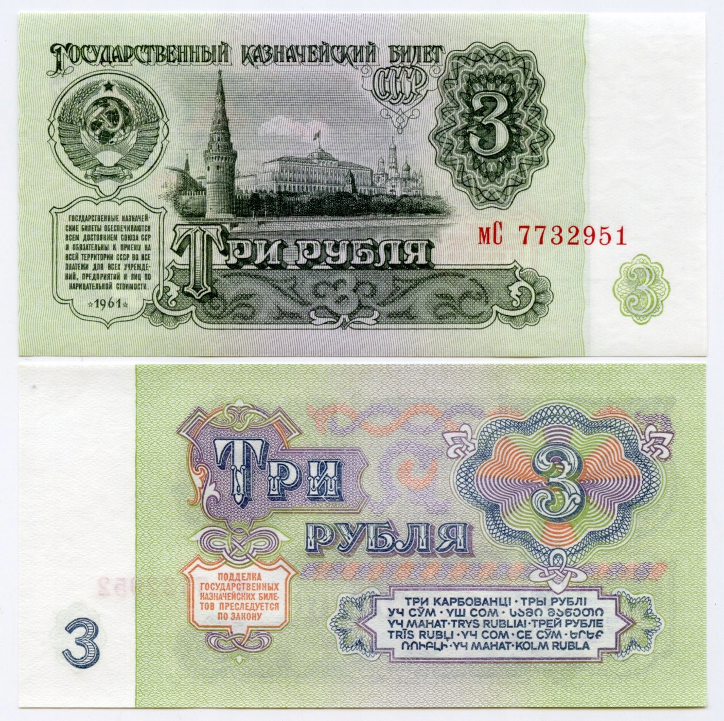 СРСР РОСІЯ 3 РУБЛІ 1961 P-223a.3 Префікс UNC мС