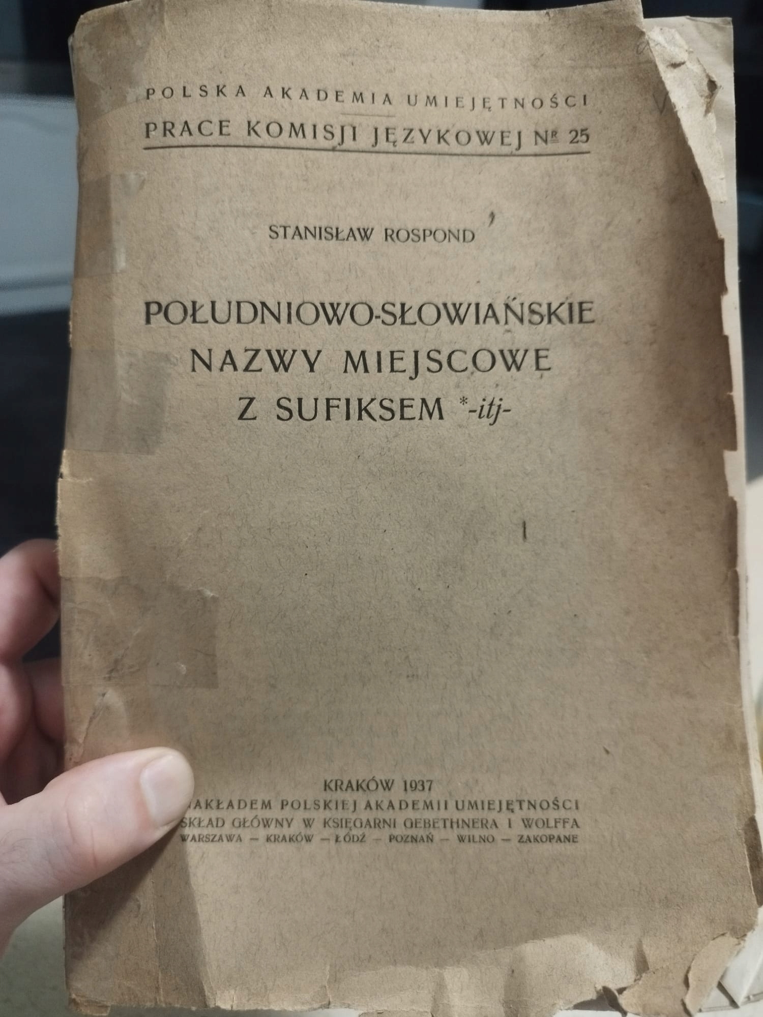 St. Rospond Południowo-słowiańskie nazwy miejscowe z sufiksem *-itj- 1937