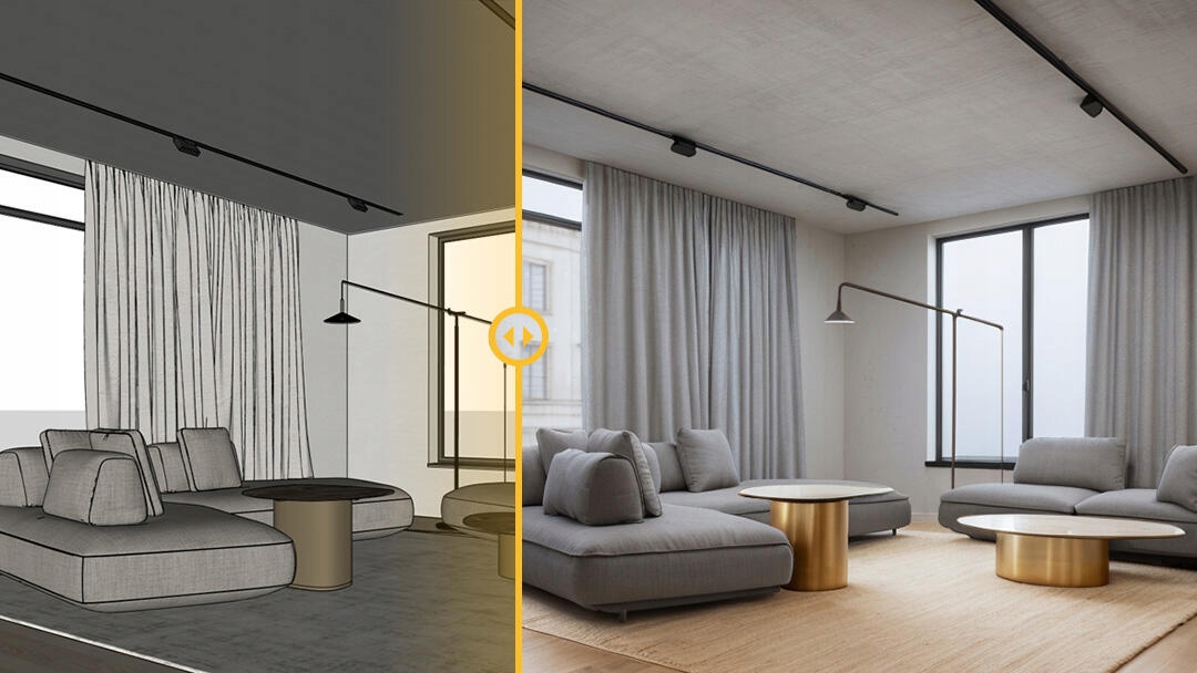 Завдяки інструментам, що базуються на AI, ви можете швидко редагувати візуалізації, змінити композицію, заповнити зображення та прикрасити його - без потреби в наданні знову. Лише кілька секунд, щоб змінити меблі, покращити фрагмент проекту або розширити кадр новими елементами. Це величезна економія часу та гнучкість у роботі з клієнтом.