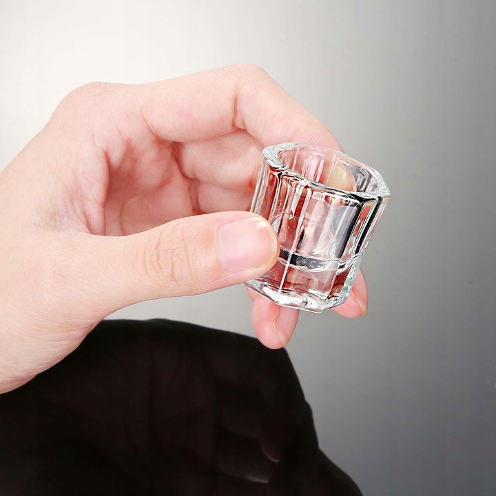 Скляна склянка, безбарвна, з товстим і важким дном. Скло виготовлене зі скла, яке дозволяє легко мити та дезинфікувати, щоб воно було готове до наступного використання.
