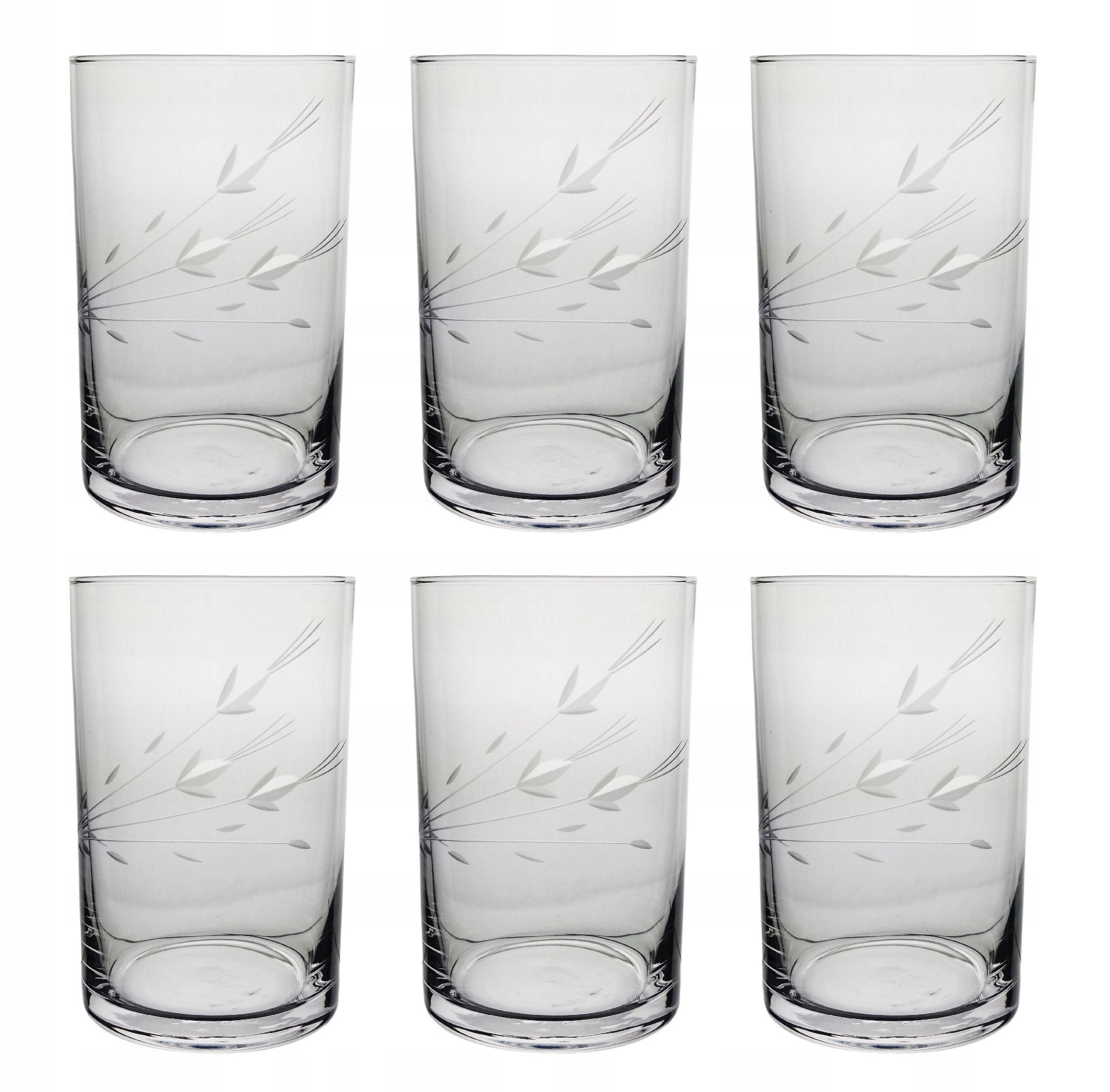 Скло прикрашене мотивом вирізаної вручну трави. У набір входить 6 склянок.