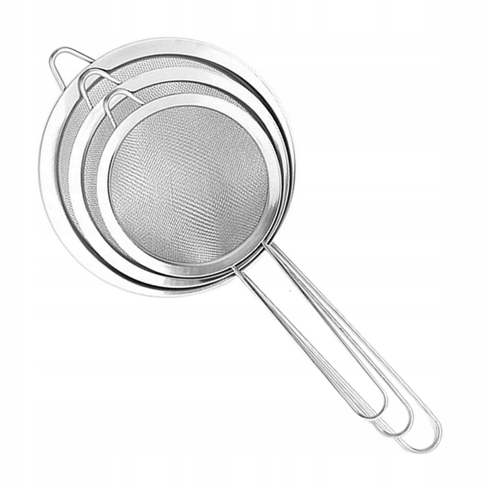 Набір кухонних ситечок з нержавіючої сталі. Сітка трьох різних діаметрів стануть в нагоді в різних кухонних завданнях - від просіювання борошна чи цукрової пудри до проціджування макаронів чи овочів.