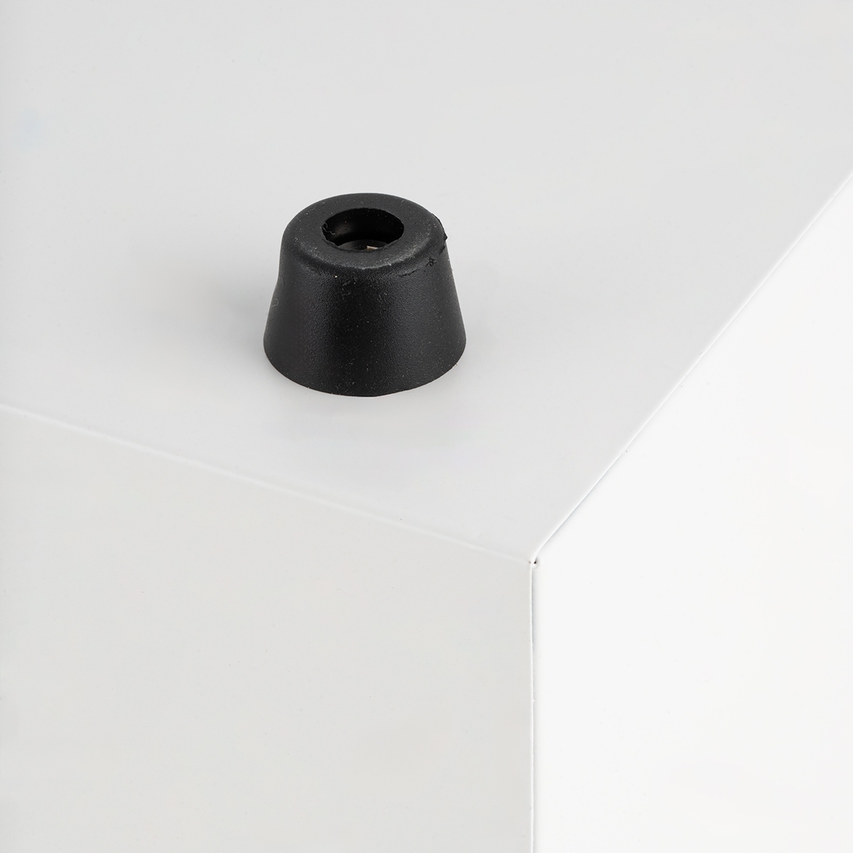 Хлібне тіло виготовлено зі сталі, пофарбованого білим матовим покриттям. Зверху є бамбукова дошка, яка також може діяти як рубаюча дошка. Фронт з геометричною текстурою додає додаткового акценту. Хлібник відкривається двома способами: спереду з дверима з ручкою або зверху, піднімаючи бамбукову дошку. Таким чином дозволяє легко та вільно покласти хліб всередину, залежно від того, що буде для нас зручніше. Маленькі ноги внизу доповнюють цілий, перетворюючи хліб на невеликий предмет меблів.