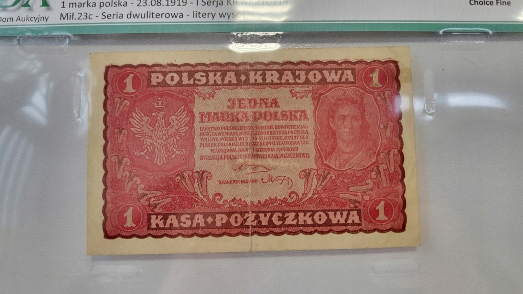 Стара банкнота 1 польська марка 1919 р. II Польська республіка № 210114 Класифікація GDA 3-15