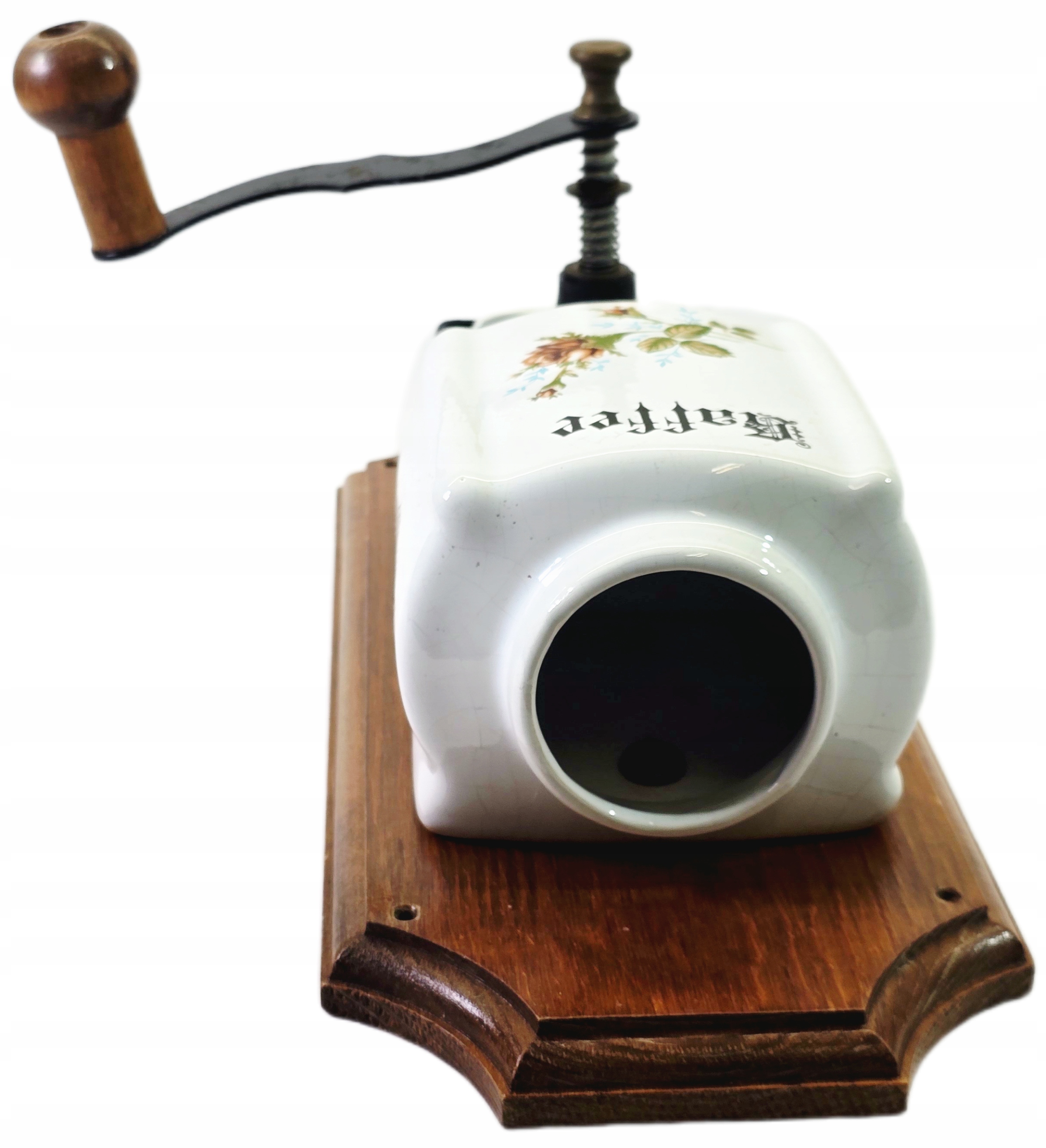 Я продаю стару, настінну кавову машину. Це прекрасний, декоративний предмет з керамічною контейнером, ідеально підходить для любителів старовинного стилю та колекціонерів. У хорошому стані використовується шліфувальна машина, а його естетика ідеально відповідає кухні в ретро, сільському або скандинавському стилі. Автентичний, старий персонаж.