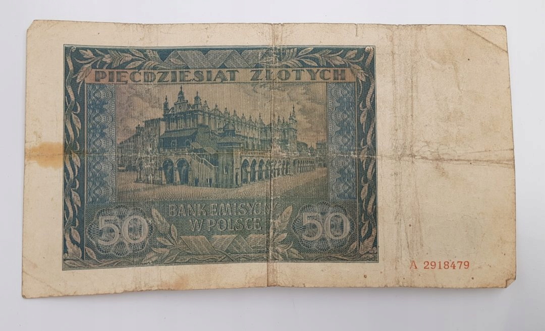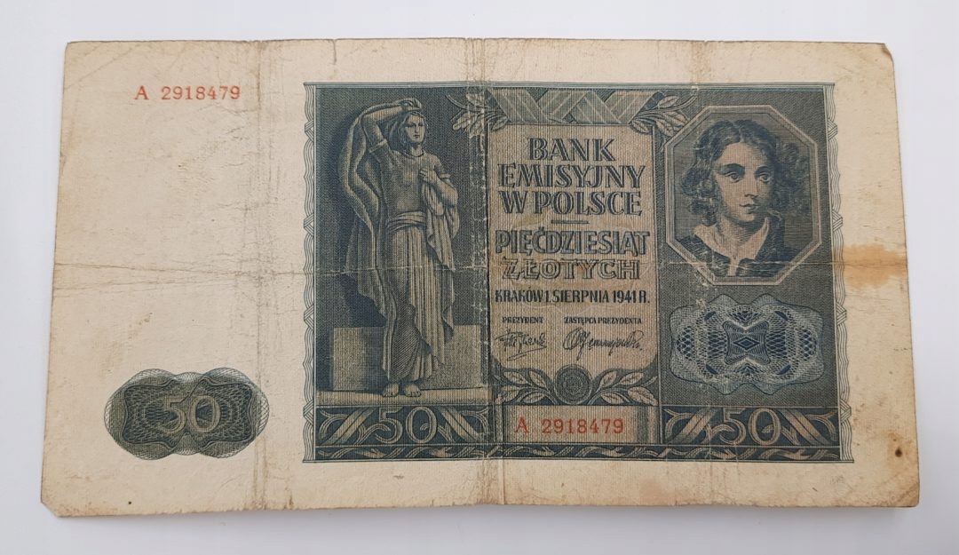 Стара колекційна банкнота Польща 50 злотих 1941 р