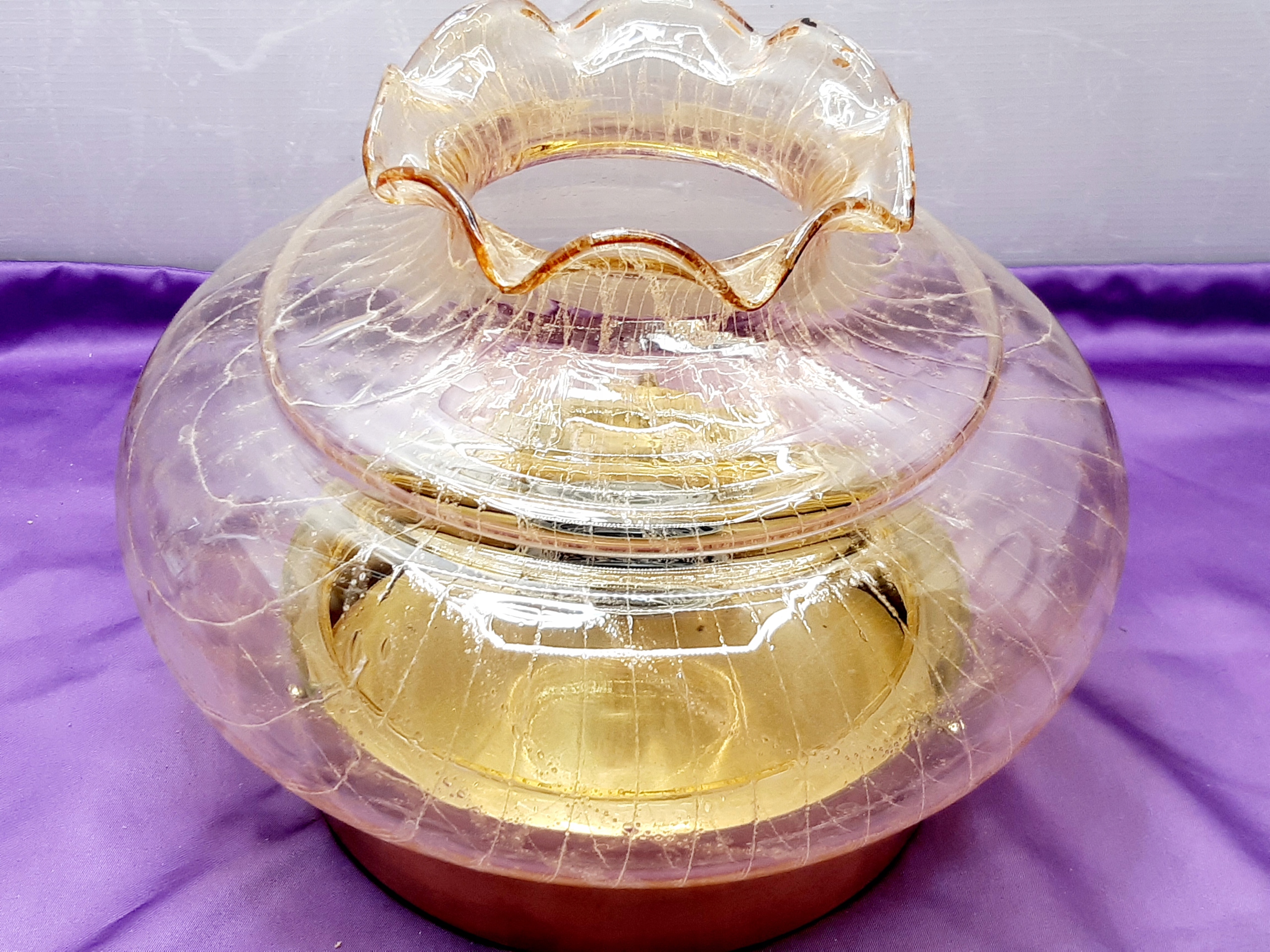 stara lampa plafon abażur szkło miodowe otwarty klosz rozeta hand made