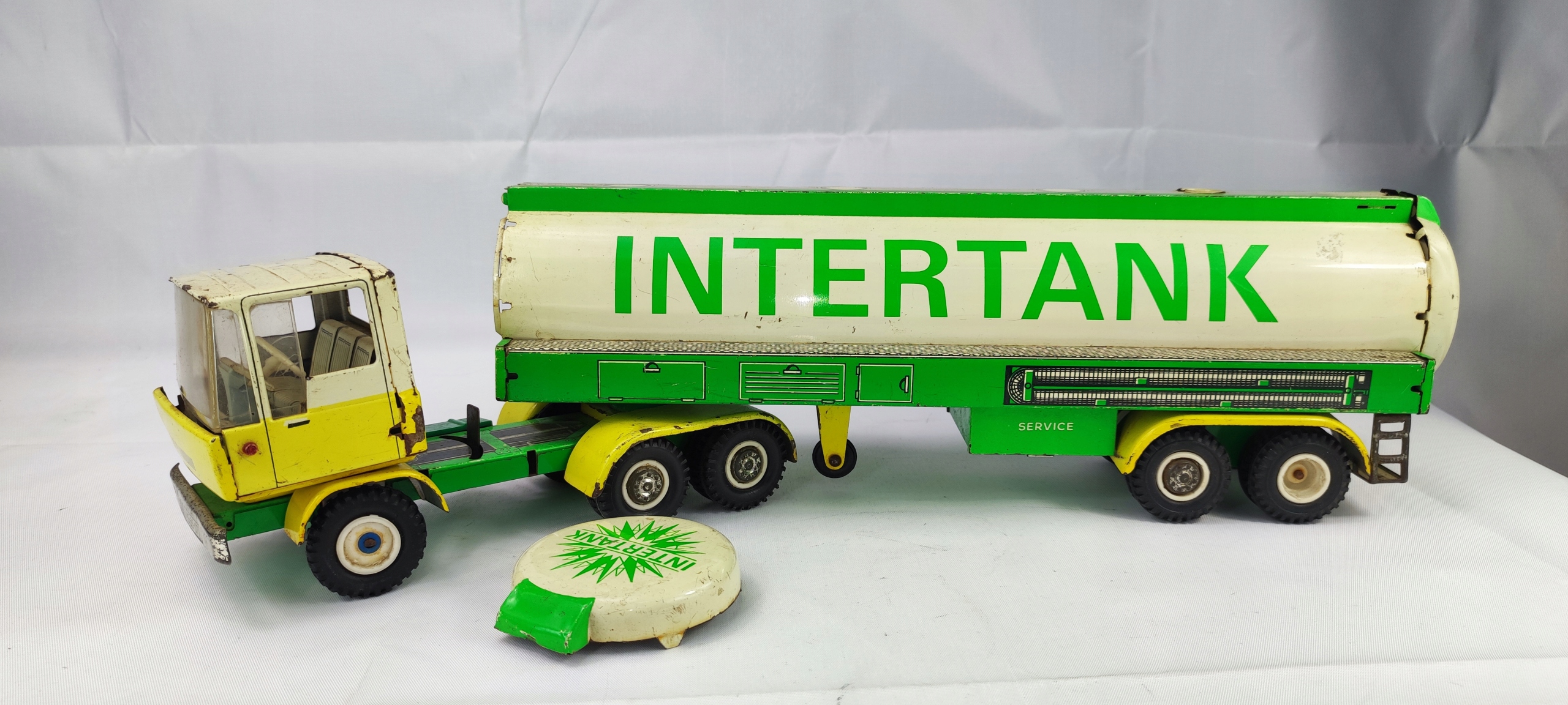 Стара металева іграшка сідловий тягач з цистерною INTERTANK листовий