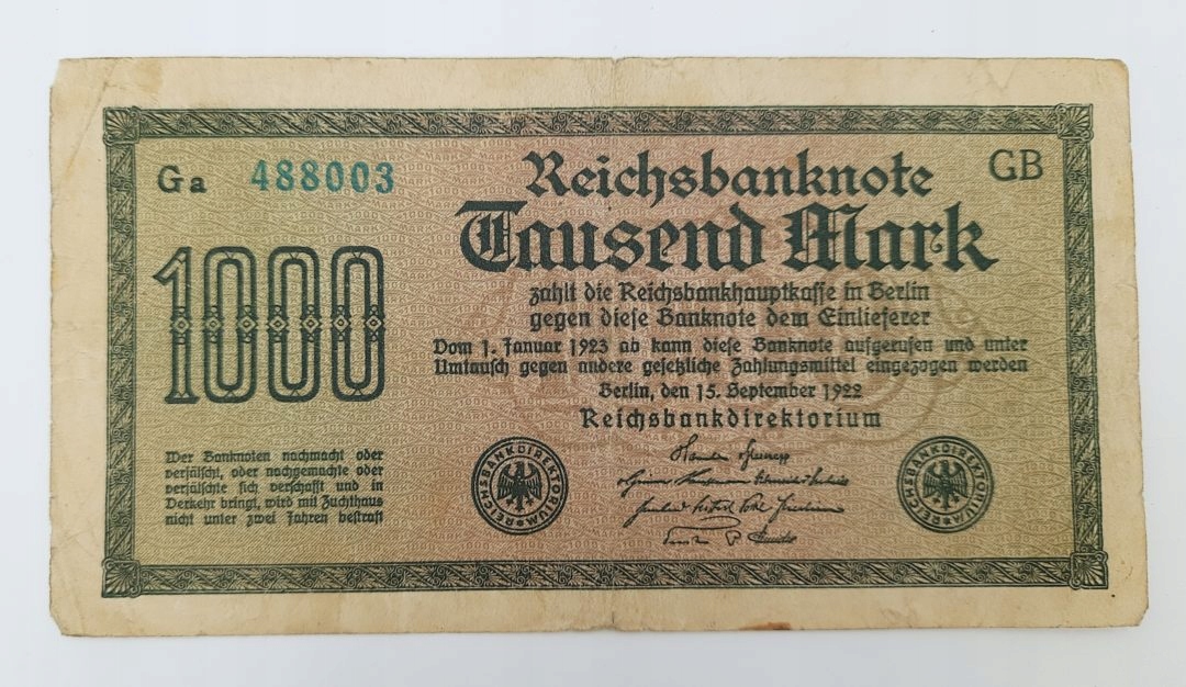 Стара німецька банкнота 1000 марок 1922 року