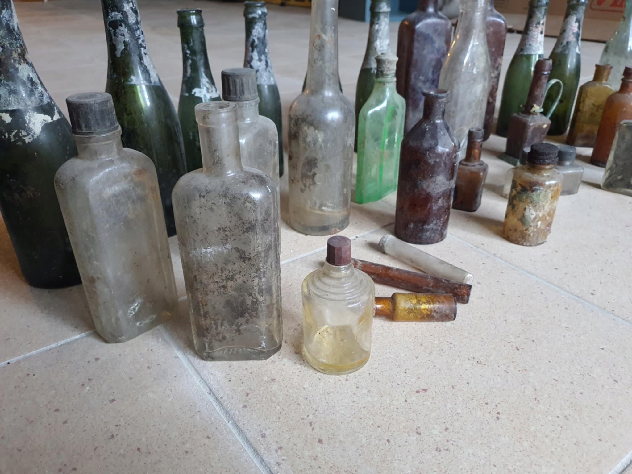 Stare butelki, buteleczki, flakoniki, fiolki, tabakierka i inne cudne szkło