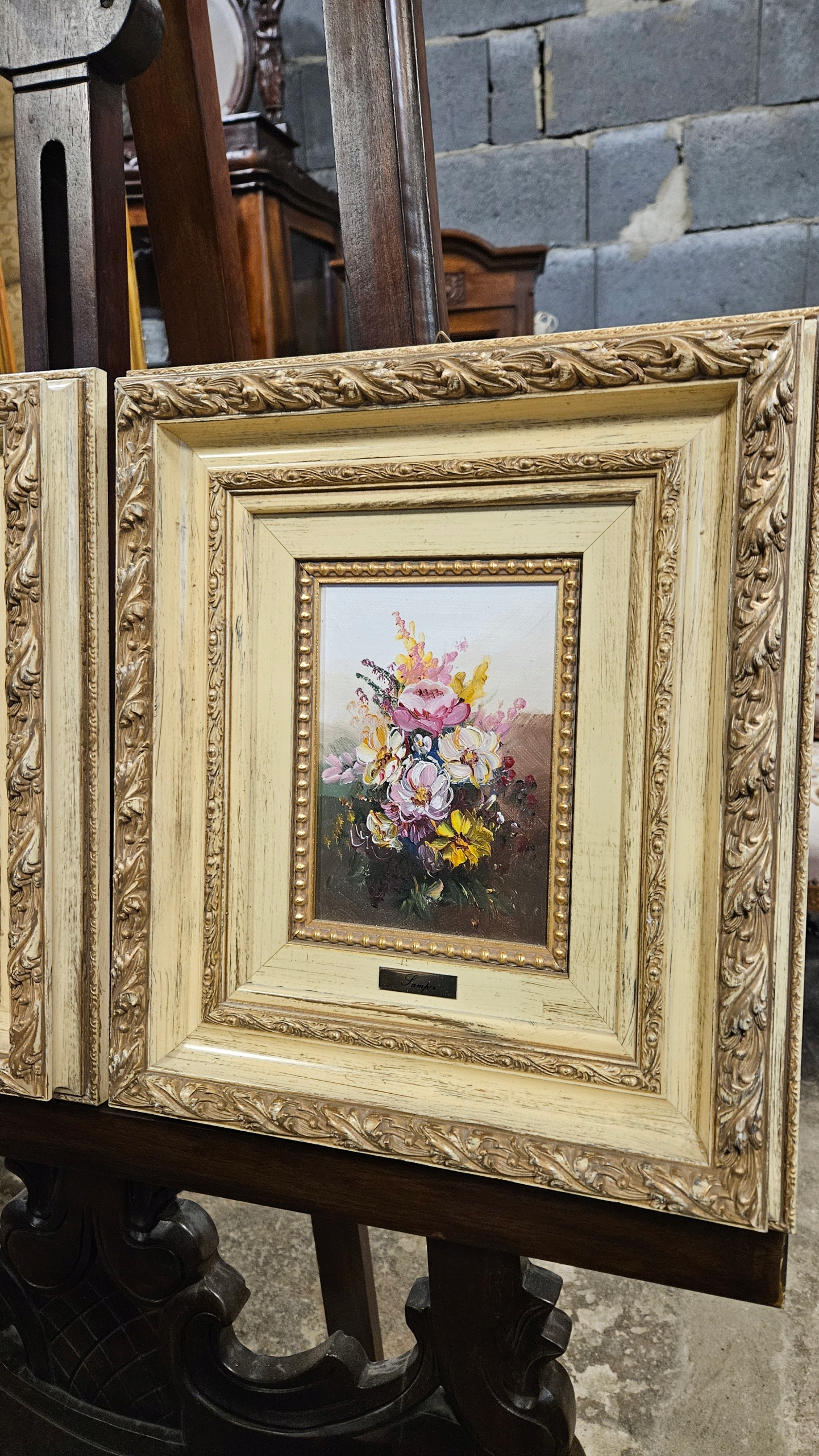 Stare Piękne Obrazki Kwiaty Malowane olej 2 szt aukcja