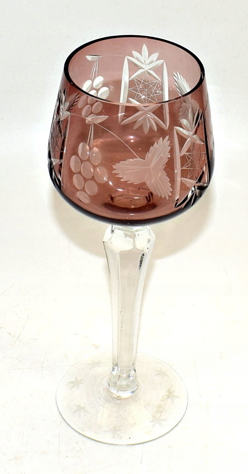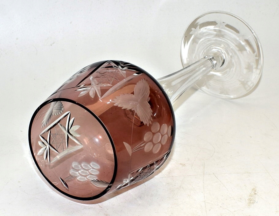 Старий і красивий скляний ремер для вина, виготовлений з барвистого, шаруватого кришталевого склянки. Частковий, ручний розріз
