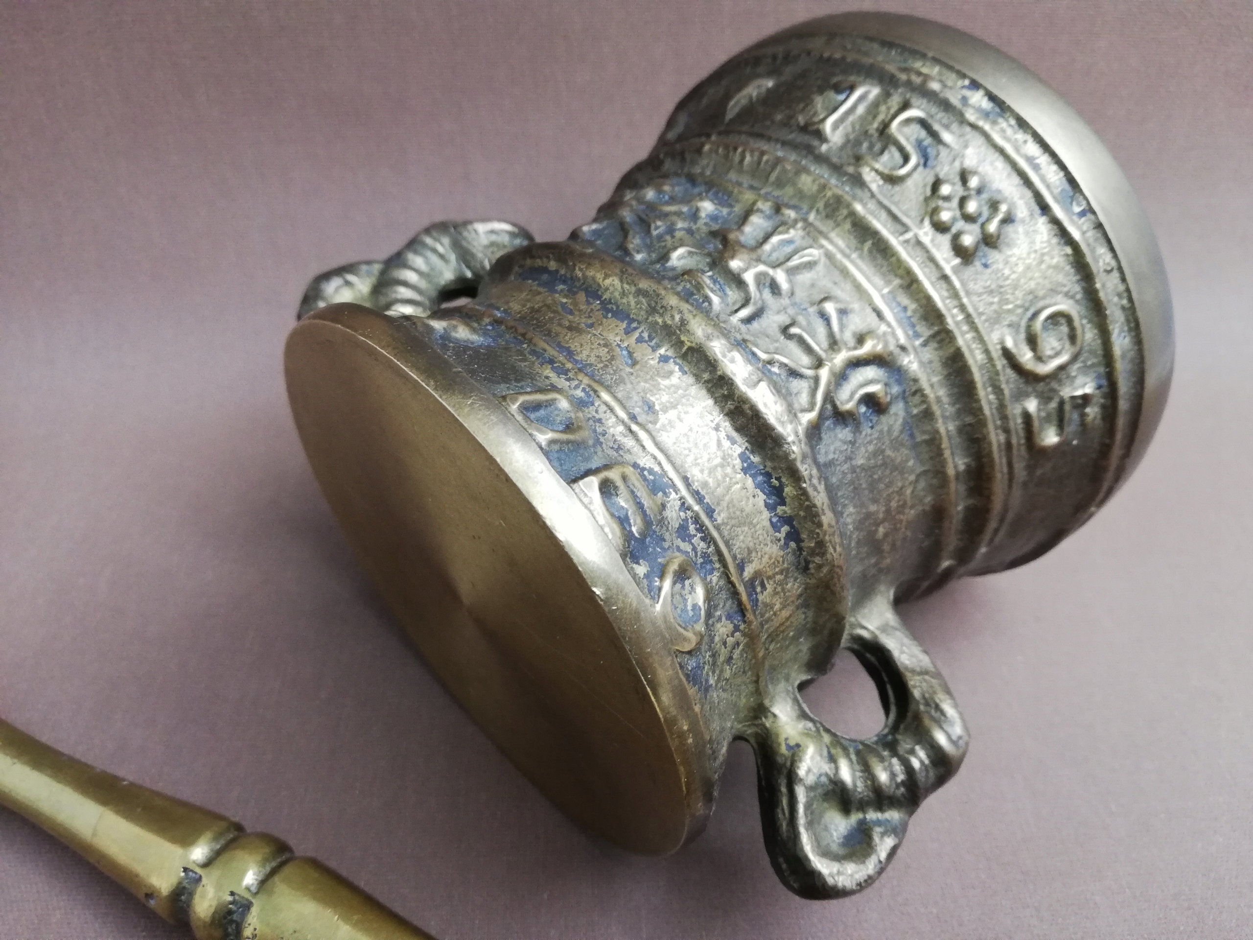 Старий латунний розчин, зроблений з масивного товстого лиття, що нанизується, рясно оформленими рельєфами