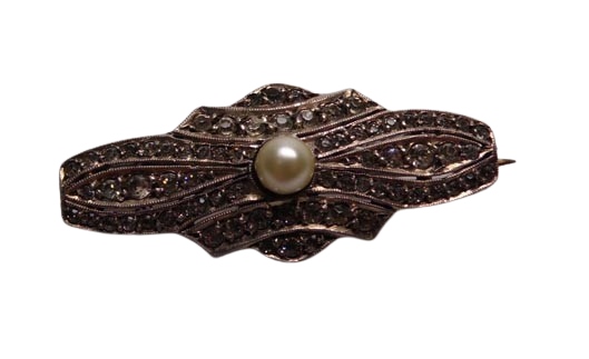 Стародавня брошка з перлиною та кристалами.