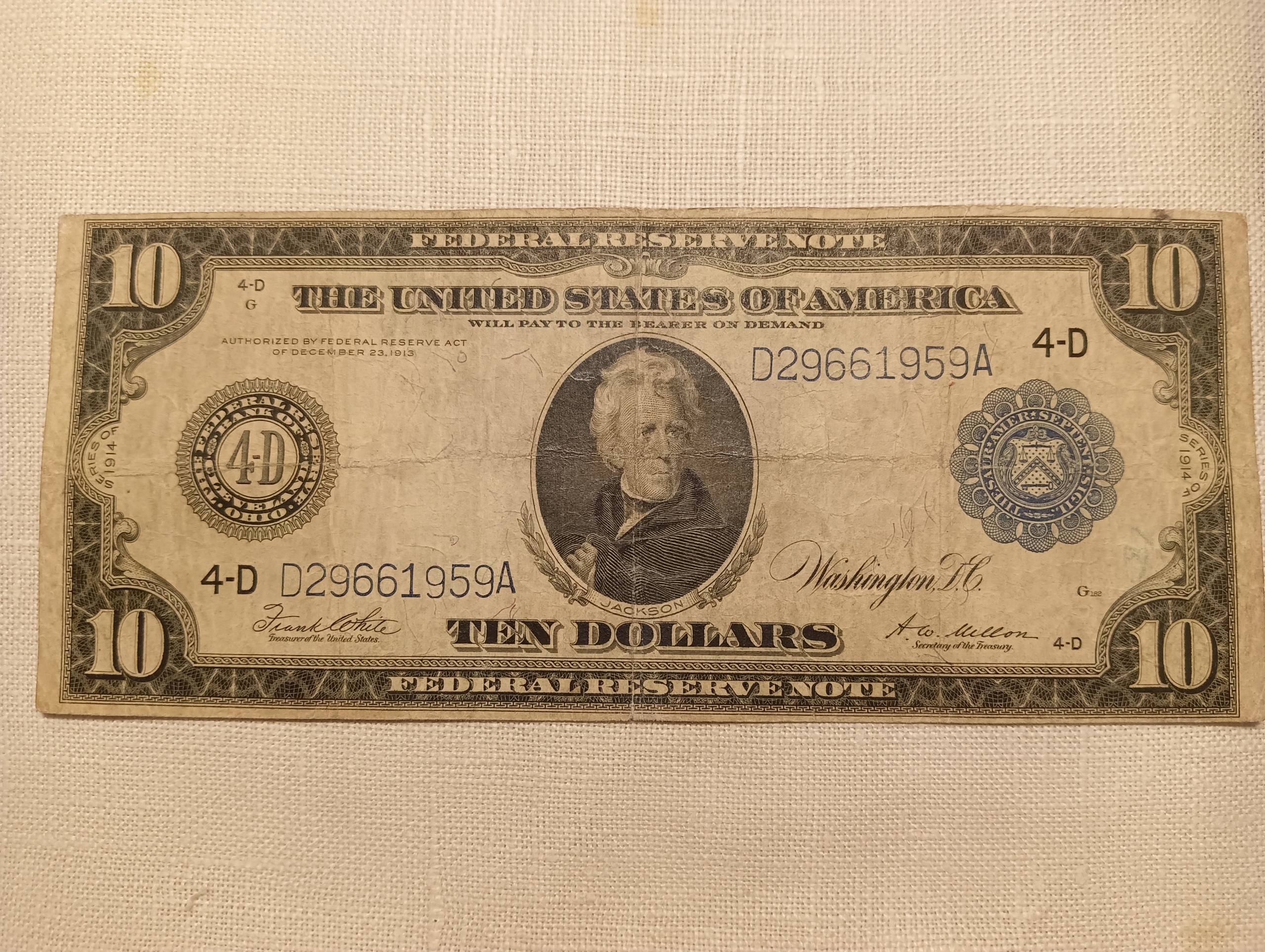 Stary banknot 10 dollarów 1913 r USA