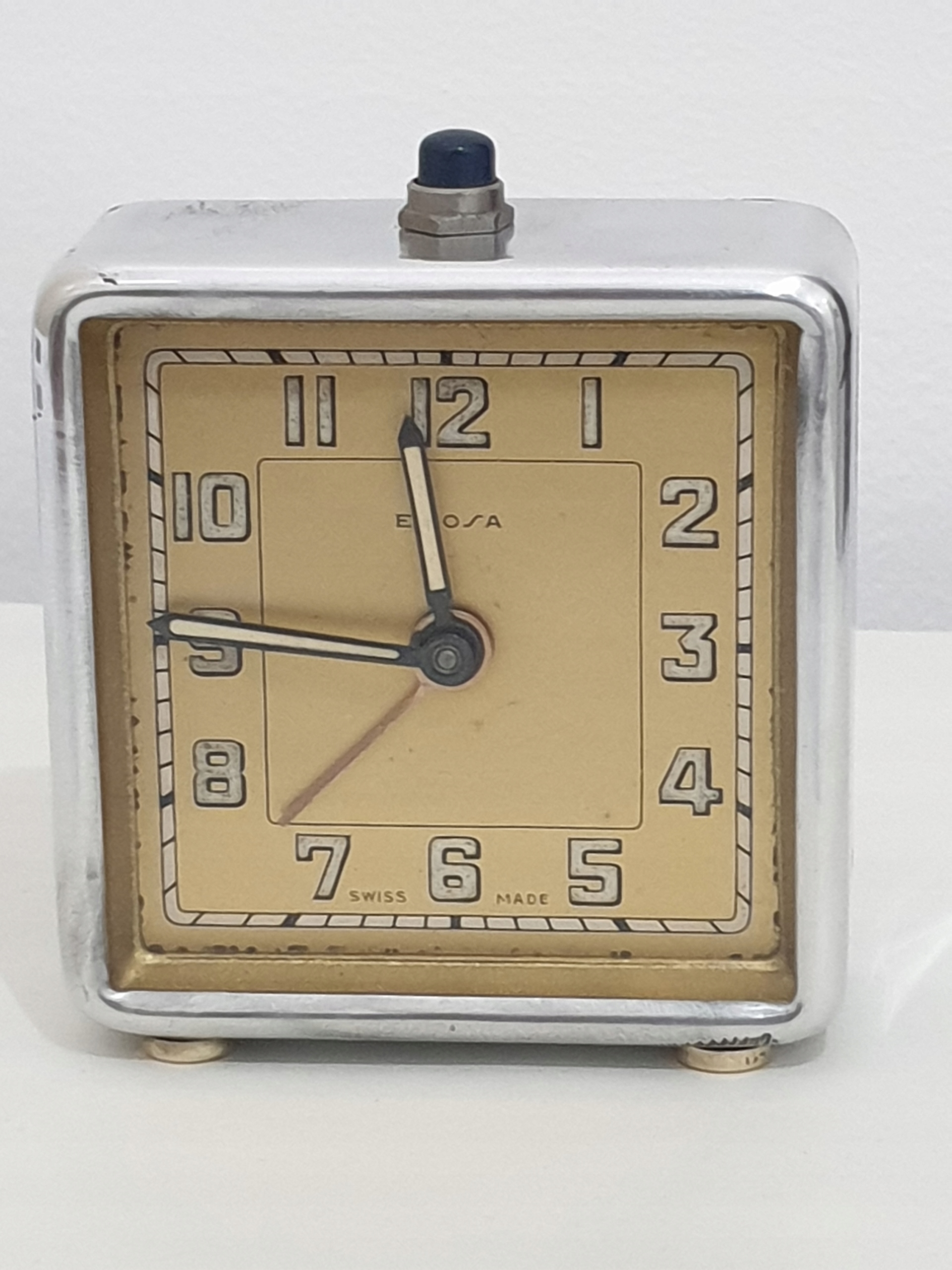 Stary Szwajcarski budzik miniatura Ebosa 1945r