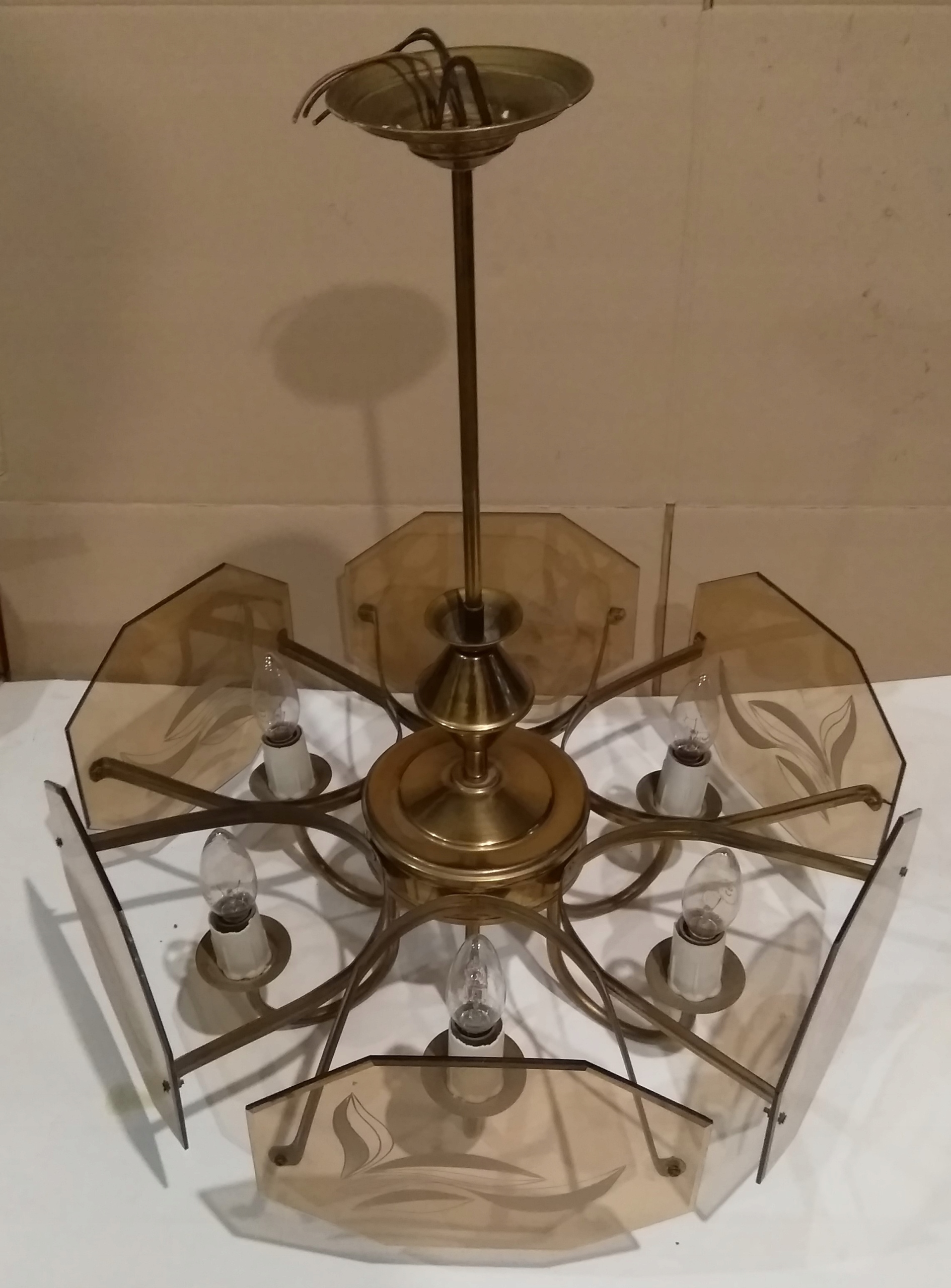 STARY ŻYRANDOL RETRO MOSIĘŻNY MOSIĄDZ 6 RAMIENNY 61x52cm KATOWICE