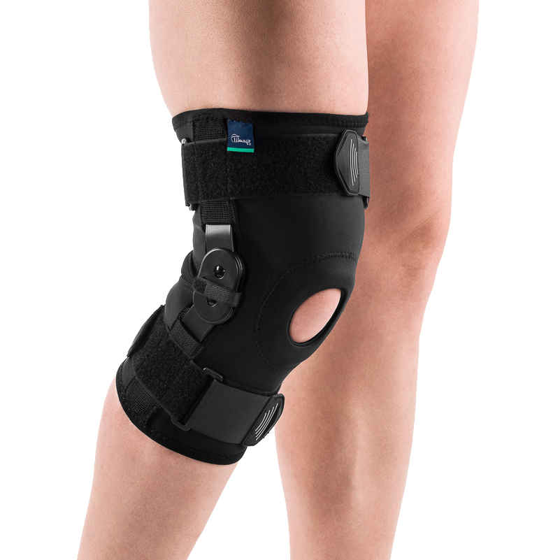 Він має отвір у центральній частині з пінопластовим кільцем, яке розташовує стабілізатор і розвантажує колінну чашечку. Поліцентричні шини стабілізують нестабільний колінний суглоб у латеральному та медіальному напрямку.