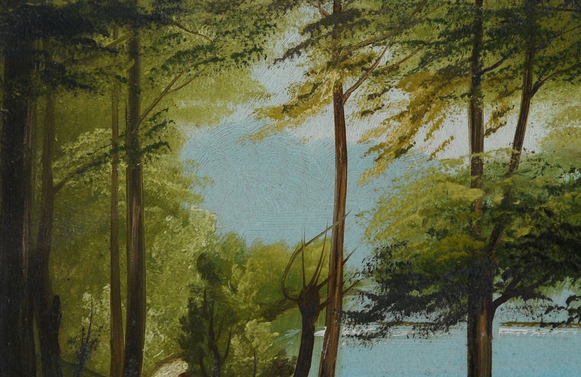 "СТЕЖКА ВЗДОВЖ ОЗЕРА" ДУЖЕ ГАРНА СТАРОВА КАРТИНА МАСЛОМ!!!