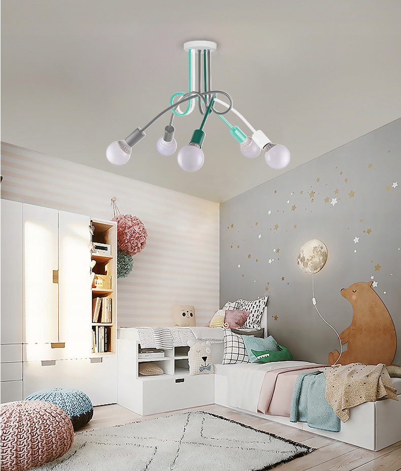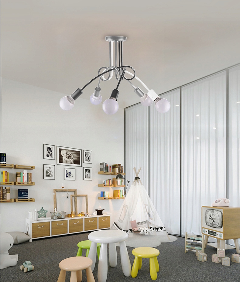 ☀️ Елегантний і функціональний стельовий світильник у вигляді сучасної люстри - ідеальне рішення для освітлення будь-якої кімнати. Оснащений 5 кронштейнами з патронами для лампочок E27, він забезпечує чудове розсіювання світла.
