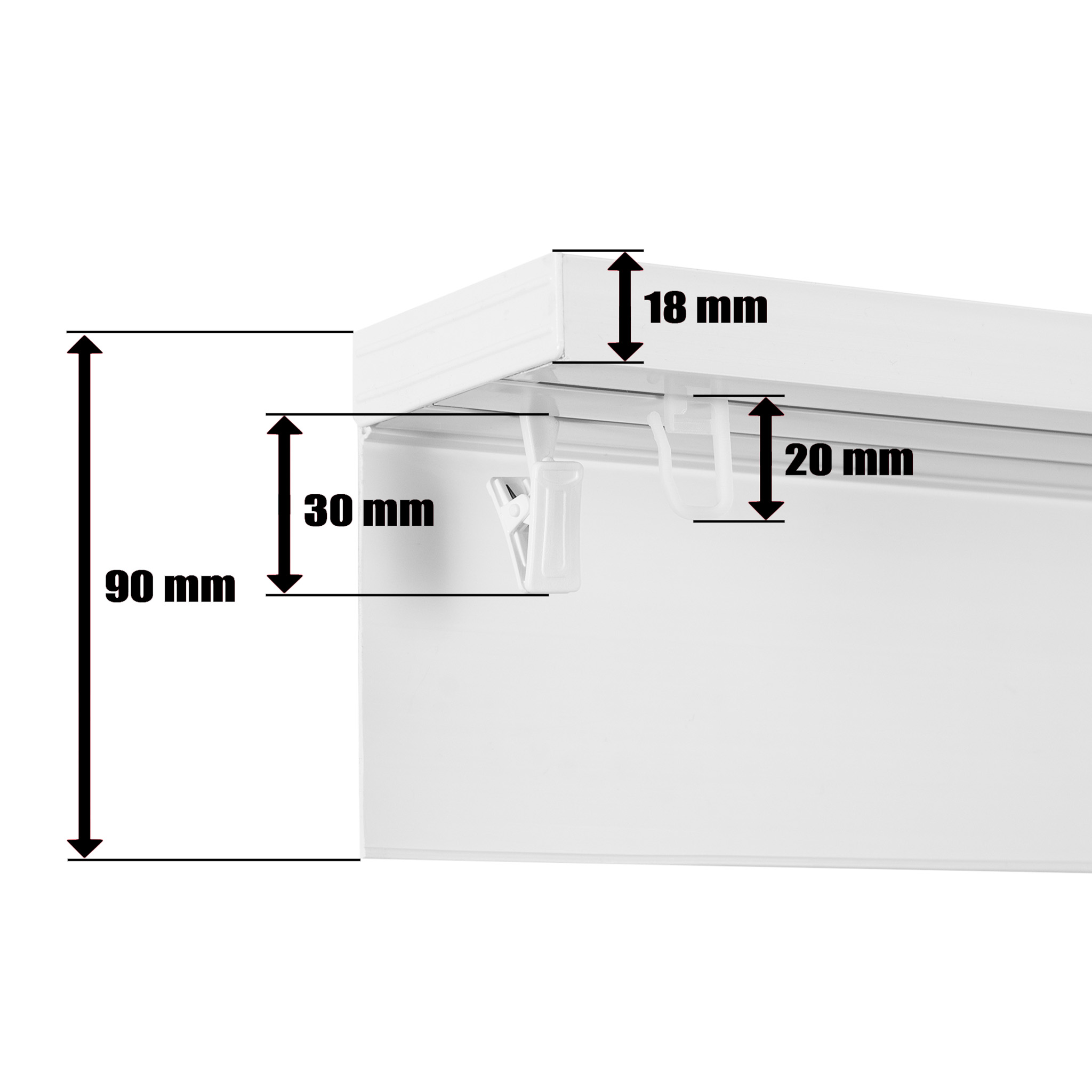 - 1 рейка для стелі з покриттям 9 см, біла, відповідно до довжини замовлення.
