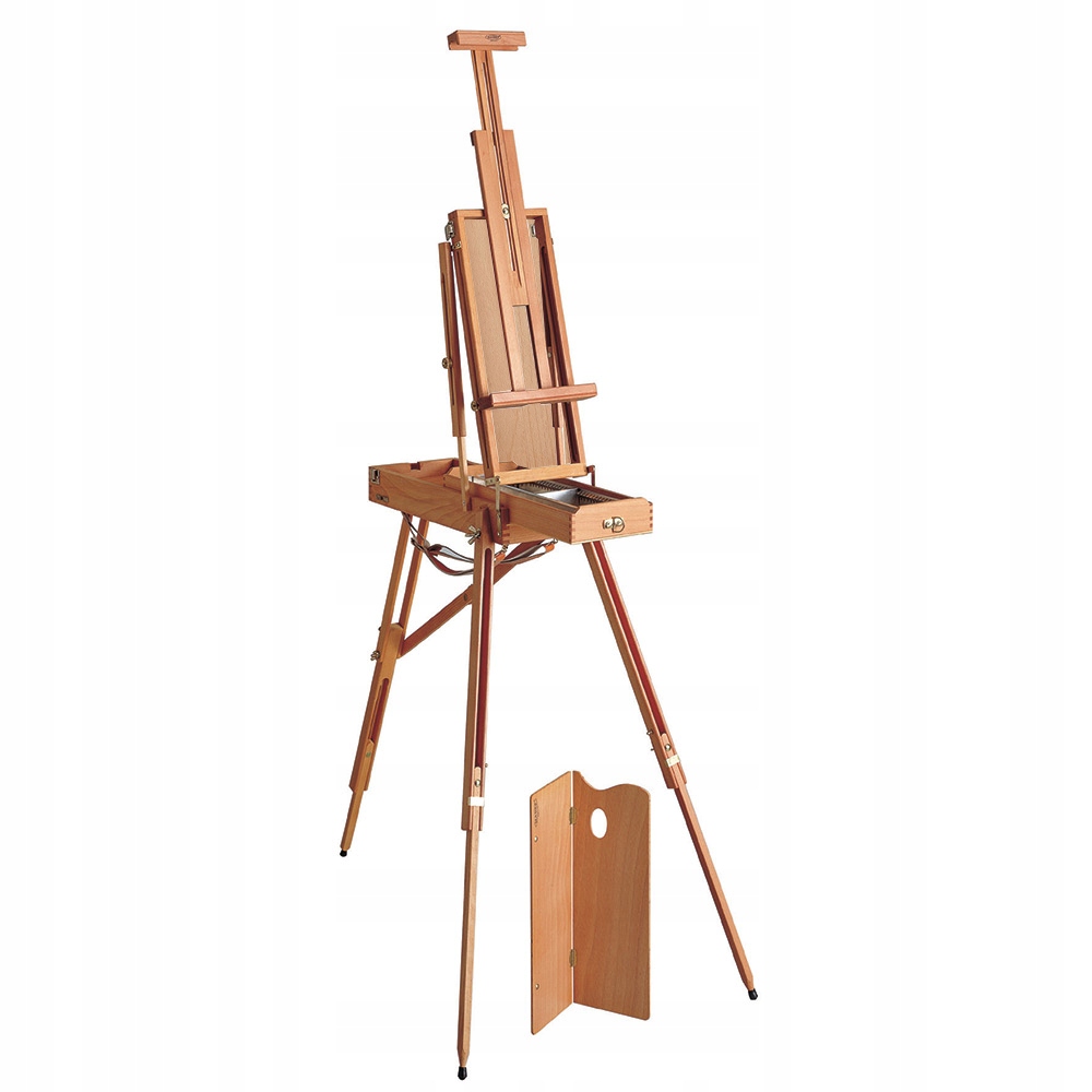 Дерев'яна підставка для малювання для художників-початківців. Складається, має 3 ніжки, також можна носити на плечі. Підставка проста в установці, ідеально підходить для малювання чи малювання. У центральній частині є лоток для зберігання пензлів, фарб або інших інструментів. До підставки додається дерев’яна палітра для змішування фарб.
