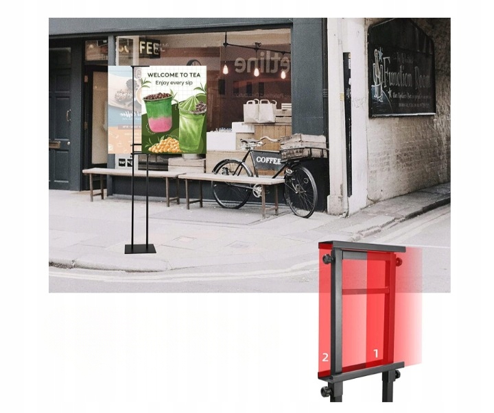Ви шукаєте міцну та елегантну стійку для плакатів для офісу, галереї, торгового центру чи події? Ставка на модель Bimiti - подвійна, стабільна та повністю регульована
