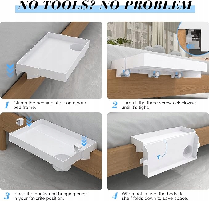 - Складна тумбочка, що заощаджує місце: важить лише 0,7 кг, розміри в складеному вигляді: 37,5 x 15,5 x 7 см, розміри розширення: 37,5 x 24,5 x 7 см. Ця складна тумбочка легка і компактна. Його можна скласти за лічені секунди, його легко носити та зберігати. Підходить для країв ліжка з внутрішньою глибиною 4 см.