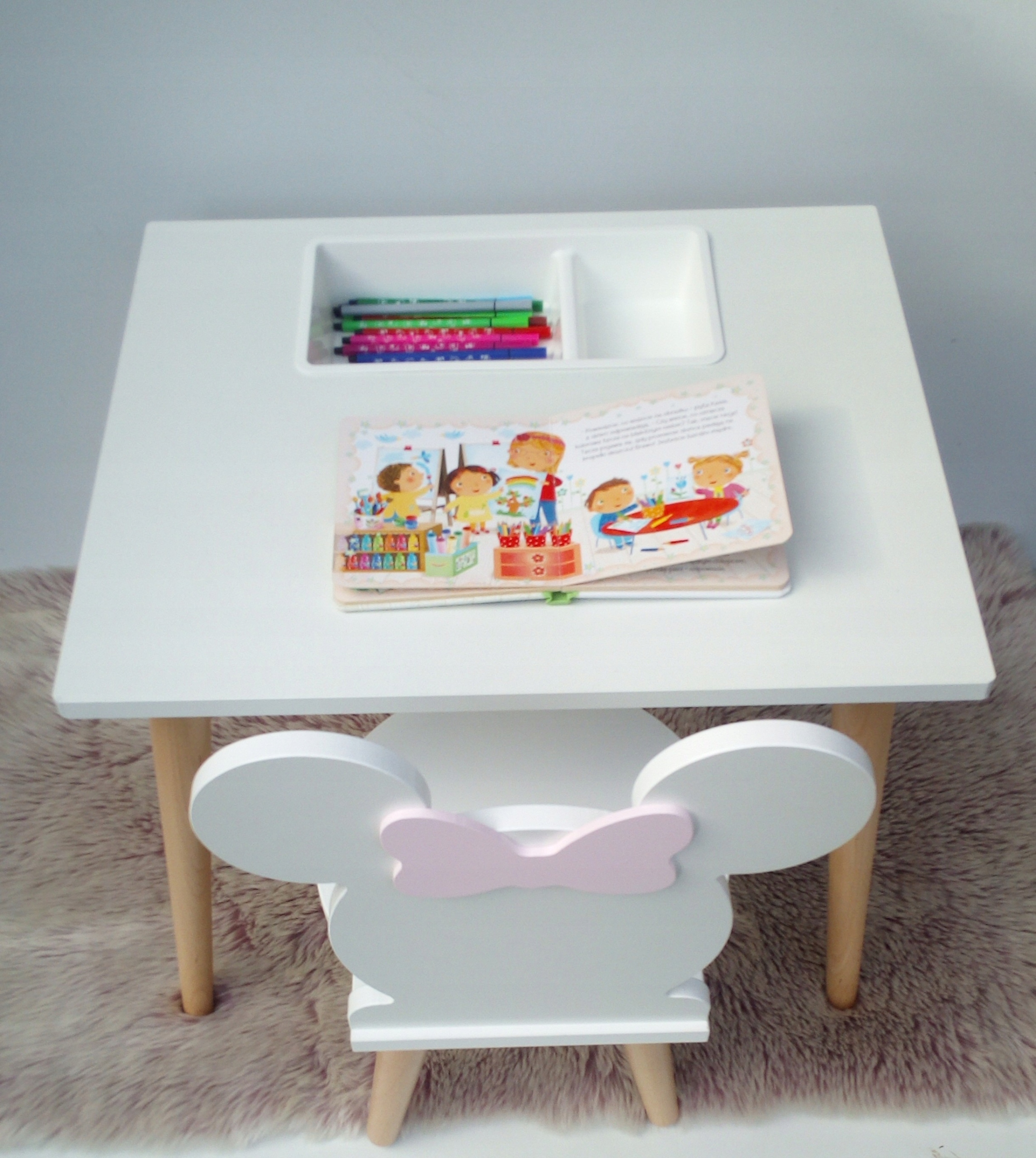 Дитячий стіл з контейнером для кольорових олівців або інших аксесуарів з одним стільчиком Mouse bow