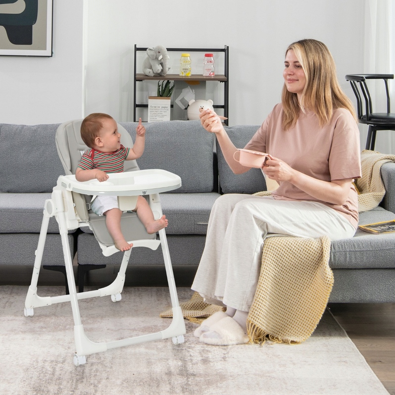 Це крісло для годування дозволяє дітям насолоджуватися звичайним сімейним харчуванням! Завдяки 6 висот, 5 лежачому положеннях, 2-позиційному лотку та 3-позиційній підставці з 3 регульованою довжиною, цей регульований та багатофункціональний високий стілець забезпечує індивідуальний комфорт і може рости з дитиною. Крім того, 4 універсальні колеса полегшують переміщення стільця в будь -яке місце. І колеса можна заблокувати, щоб запобігти раптовому ковзанню. Крім того, цей високий стілець для дитини виготовляється з стійкої до іржі металевої трубки та оболонки ПП, яка не містить BPA, яка нешкідлива для здоров'я вашої дитини і може використовуватися протягом тривалого часу.