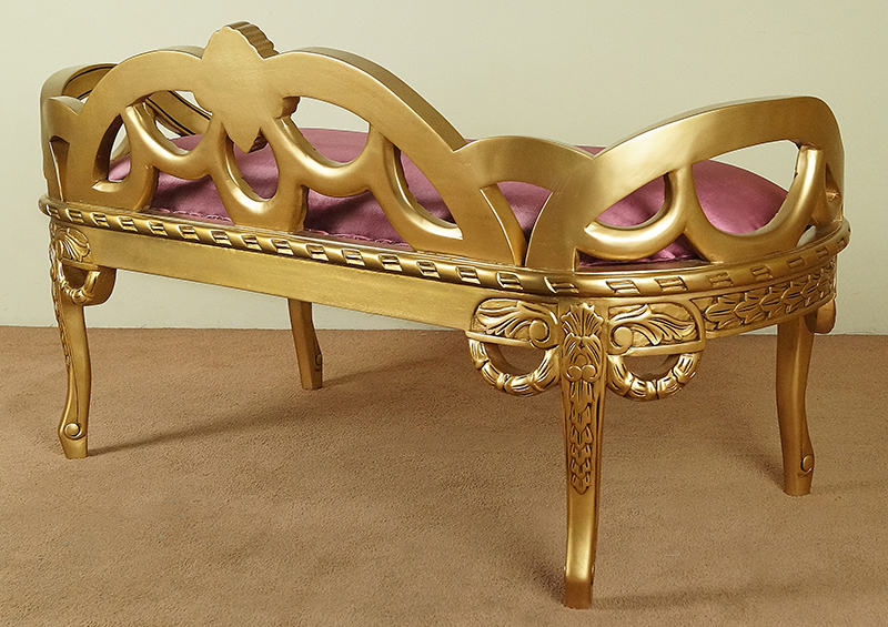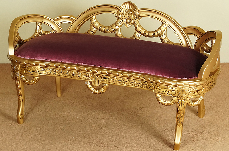 Меблі виготовлені з добірного масиву червоного дерева найвищої якості, пофарбовані золотою фарбою. Ця модель характеризується ретельною, трудомісткою різьбою, виконаною з максимальною увагою до деталей найкращими майстрами.