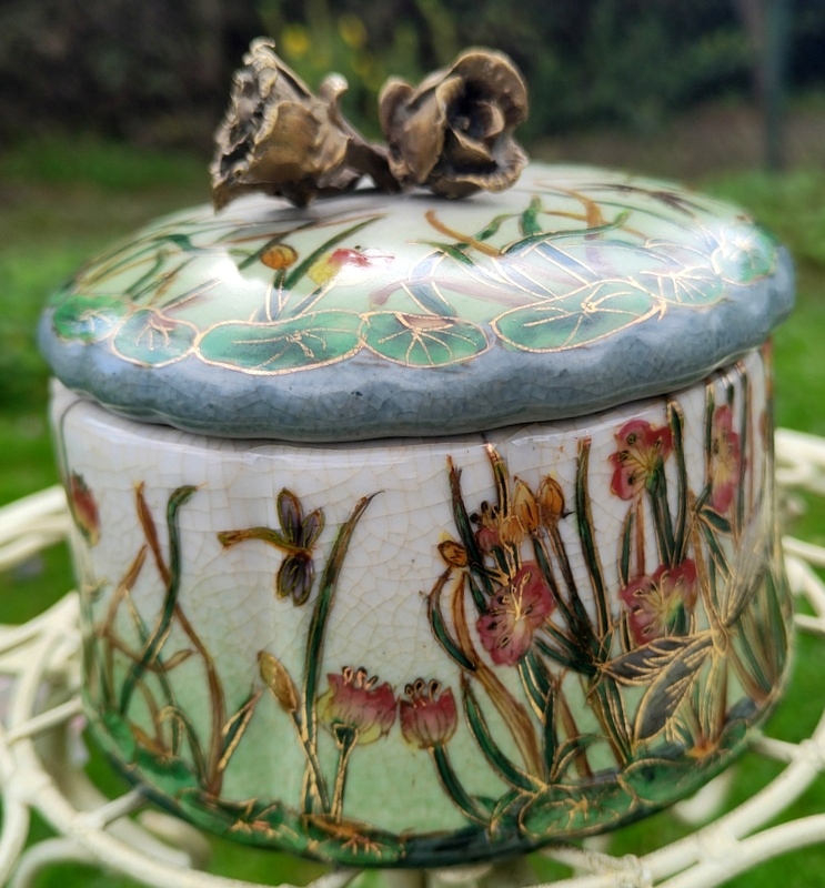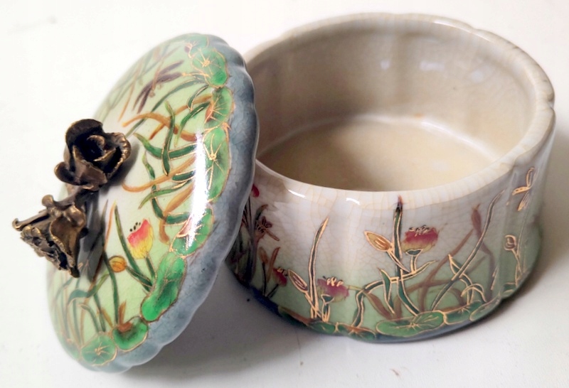 Красива скринька виконана в сучасному старовинному стилі. Новий, не використовувався. Порцеляна зі смаком розписана квітами теплих тонів. Додатковим декоративним елементом є латунь, особливо ручка у вигляді троянди. Страва чарівна та шикарна, неодмінно стане прикрасою та корисною річчю у вашому домі.